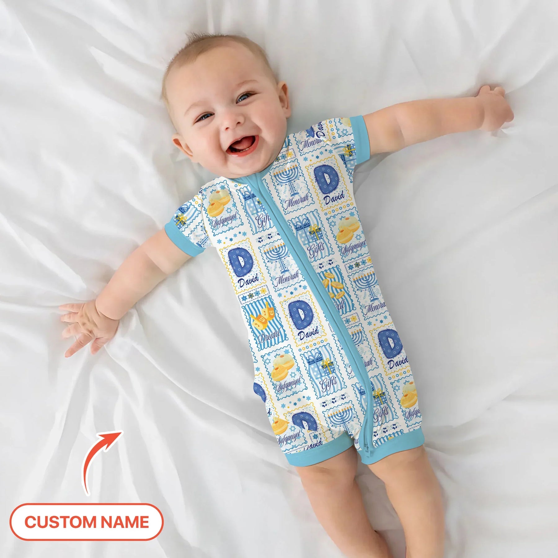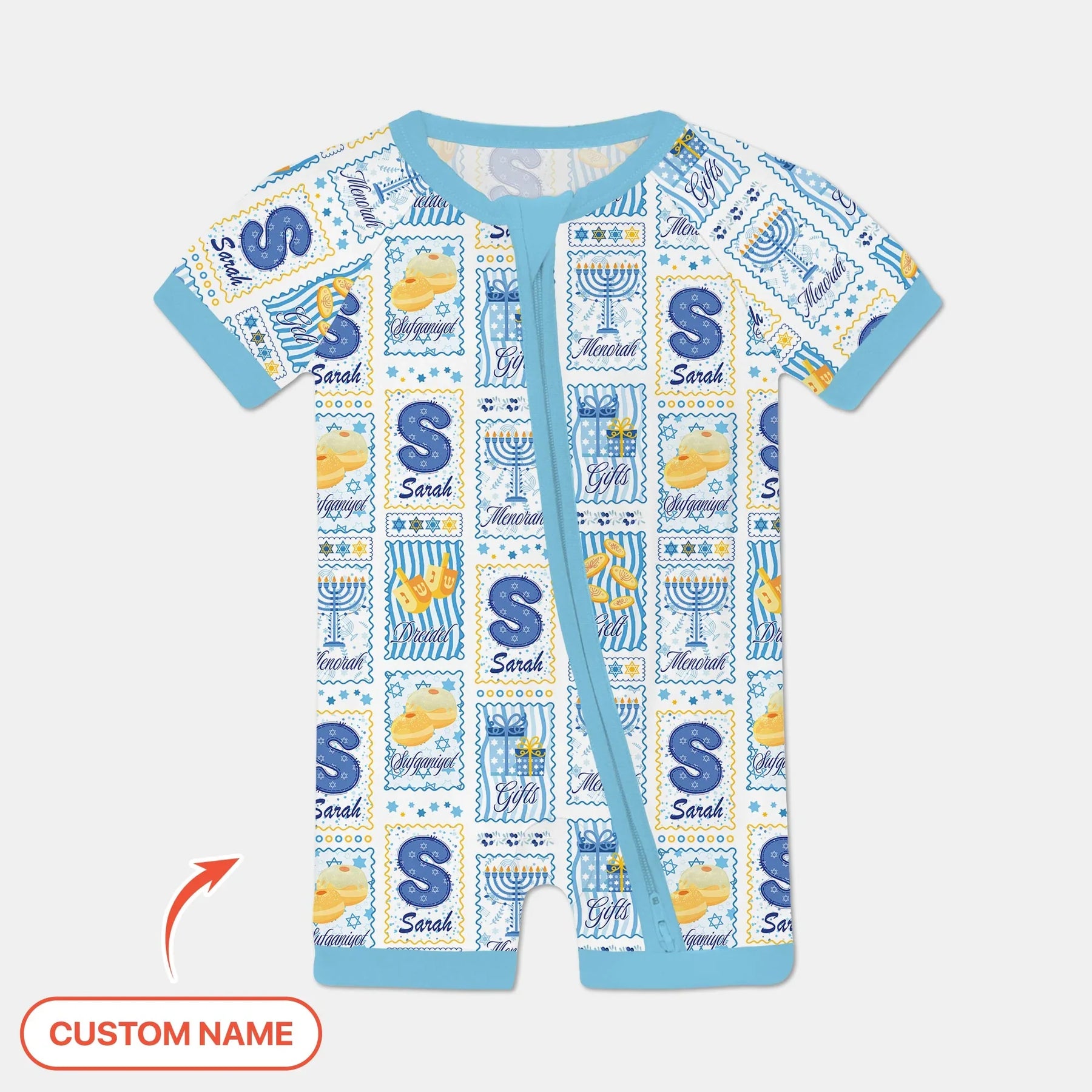 Celebrate the Festival of Lights in cozy style! Our Light of Hanukkah Custom Name Collection feature menorahs, dreidels, and stars in festive blue and gold — soft, breathable, and personalized with your child’s name for a touch of holiday magic.
