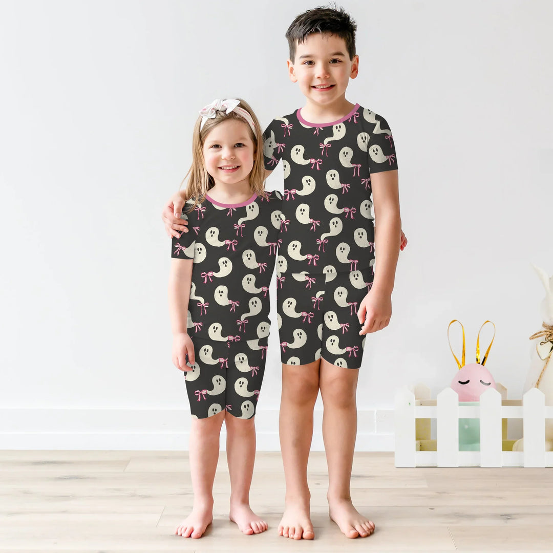Little Ghosts Two Piece Short Sleeve Pajama Set For Haloween