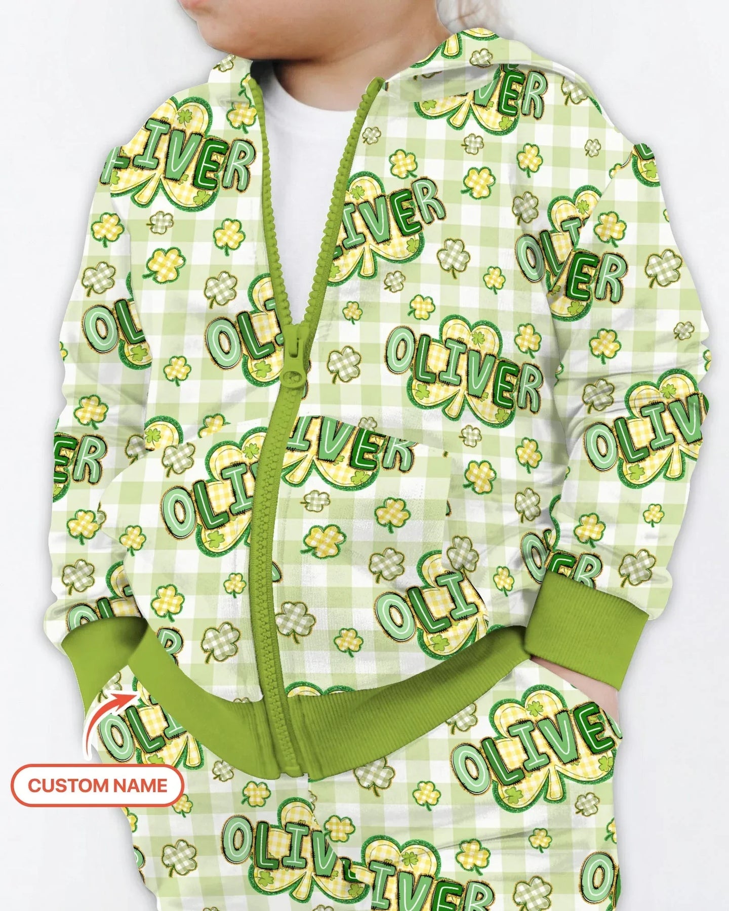 Lucky Shamrock Custom Name Zip Hoodie