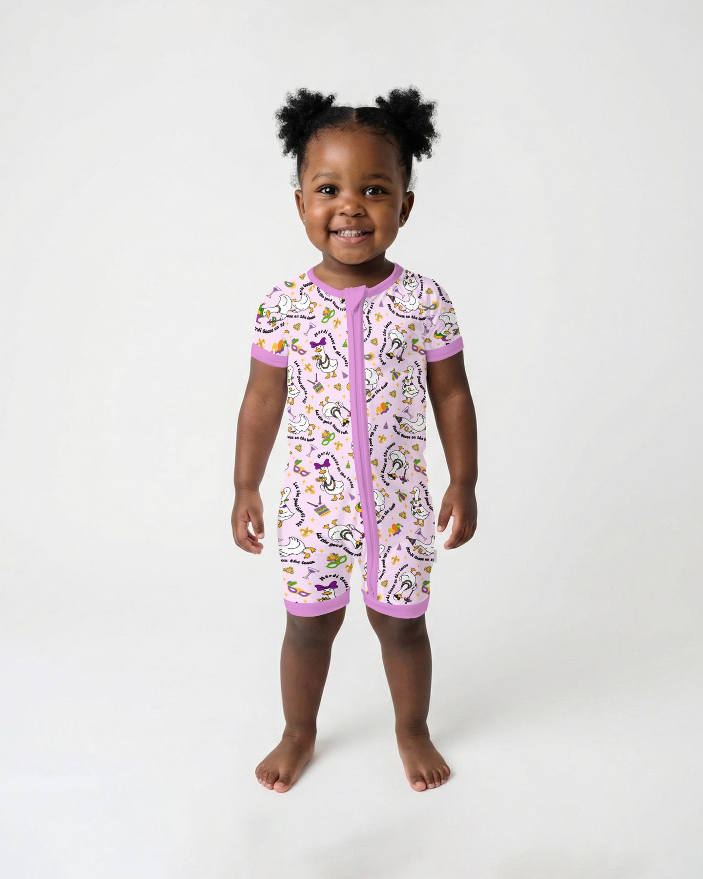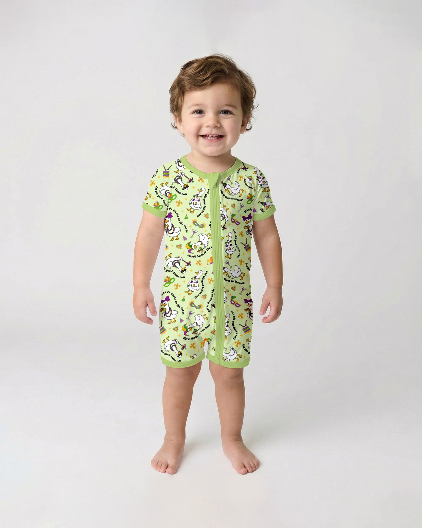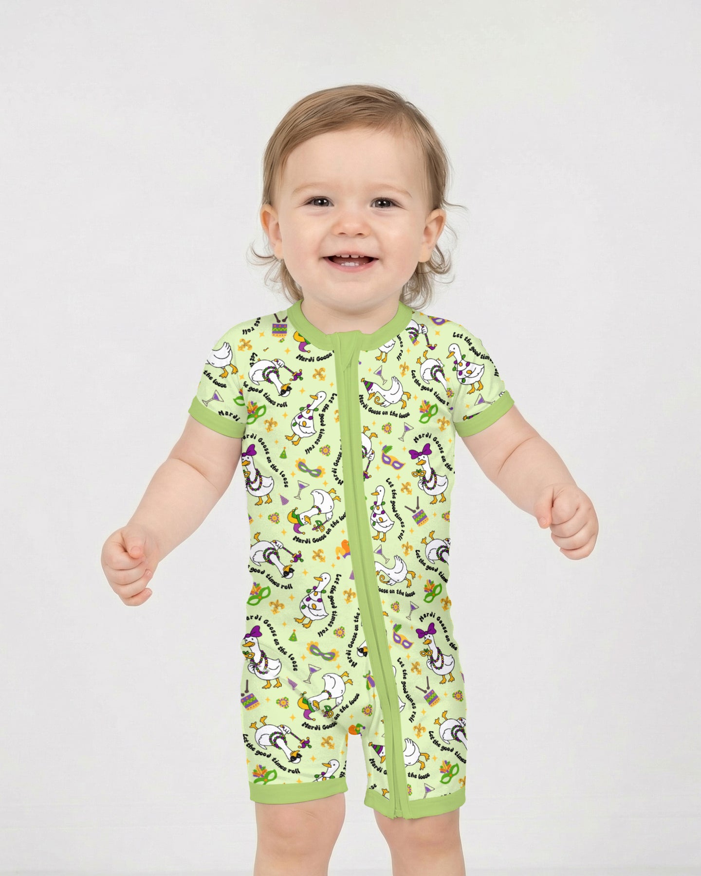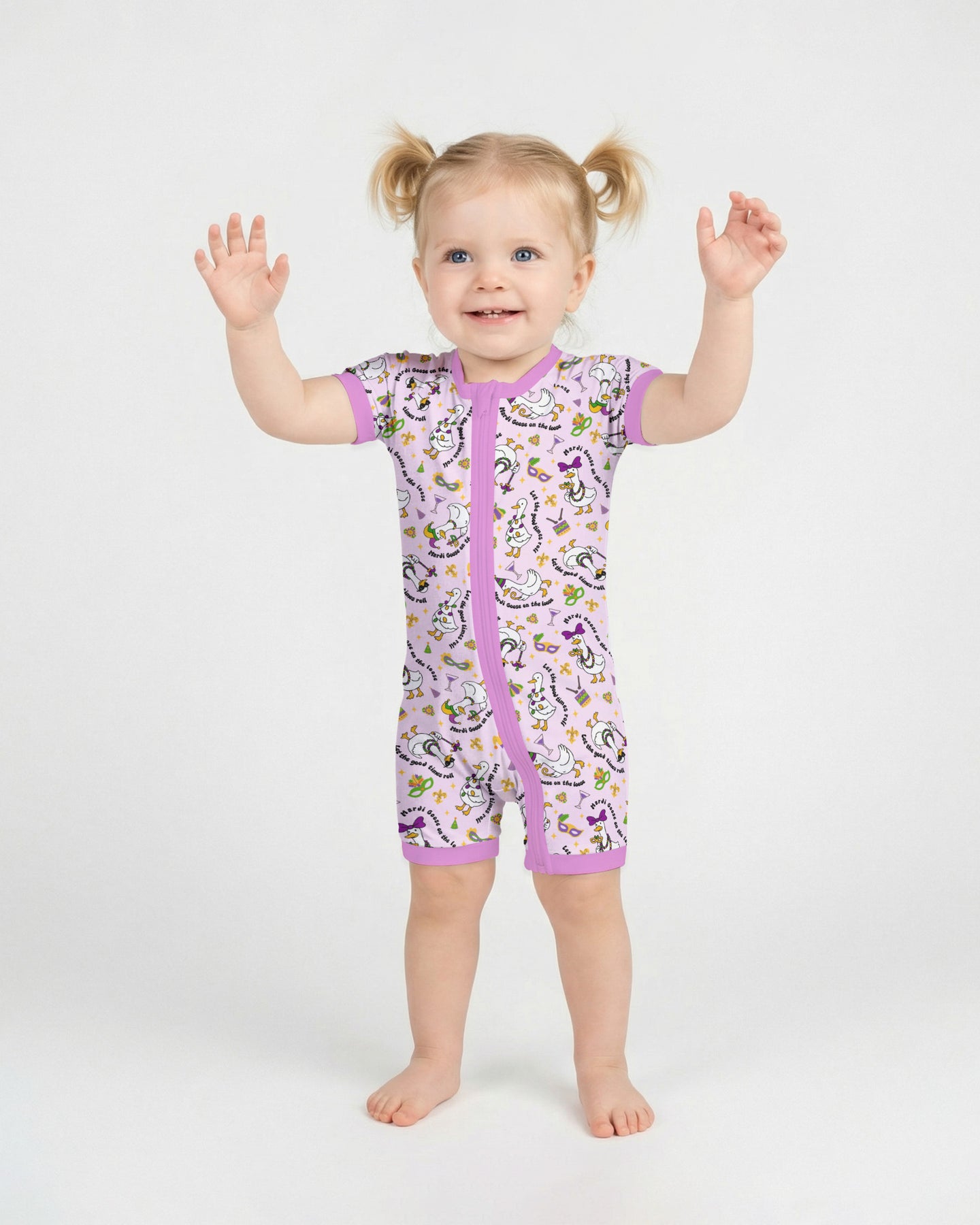 Made from our signature ultra-soft bamboo fabric, these zippies and PJ sets are breathable, stretchy, and gentle on sensitive skin—keeping kids comfy day and night. A joyful, whimsical design that brings Mardi Gras magic straight to bedtime and playtime! 💜💛💚