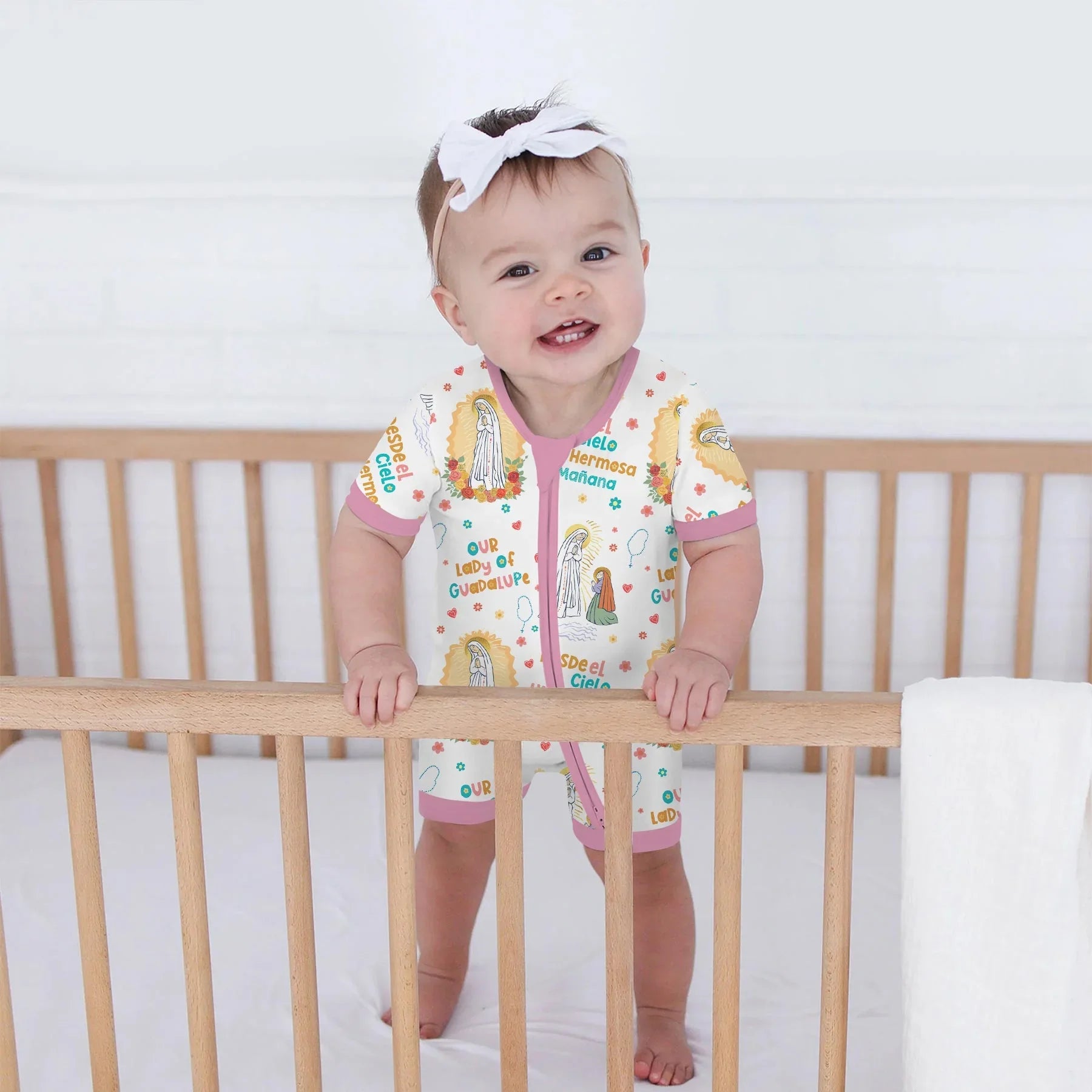Celebrate faith and love with our Our Lady of Guadalupe Collection! Featuring beautifully illustrated icons and heartfelt Spanish phrases, this cozy bamboo set honors tradition with softness, color, and comfort for your little blessings.