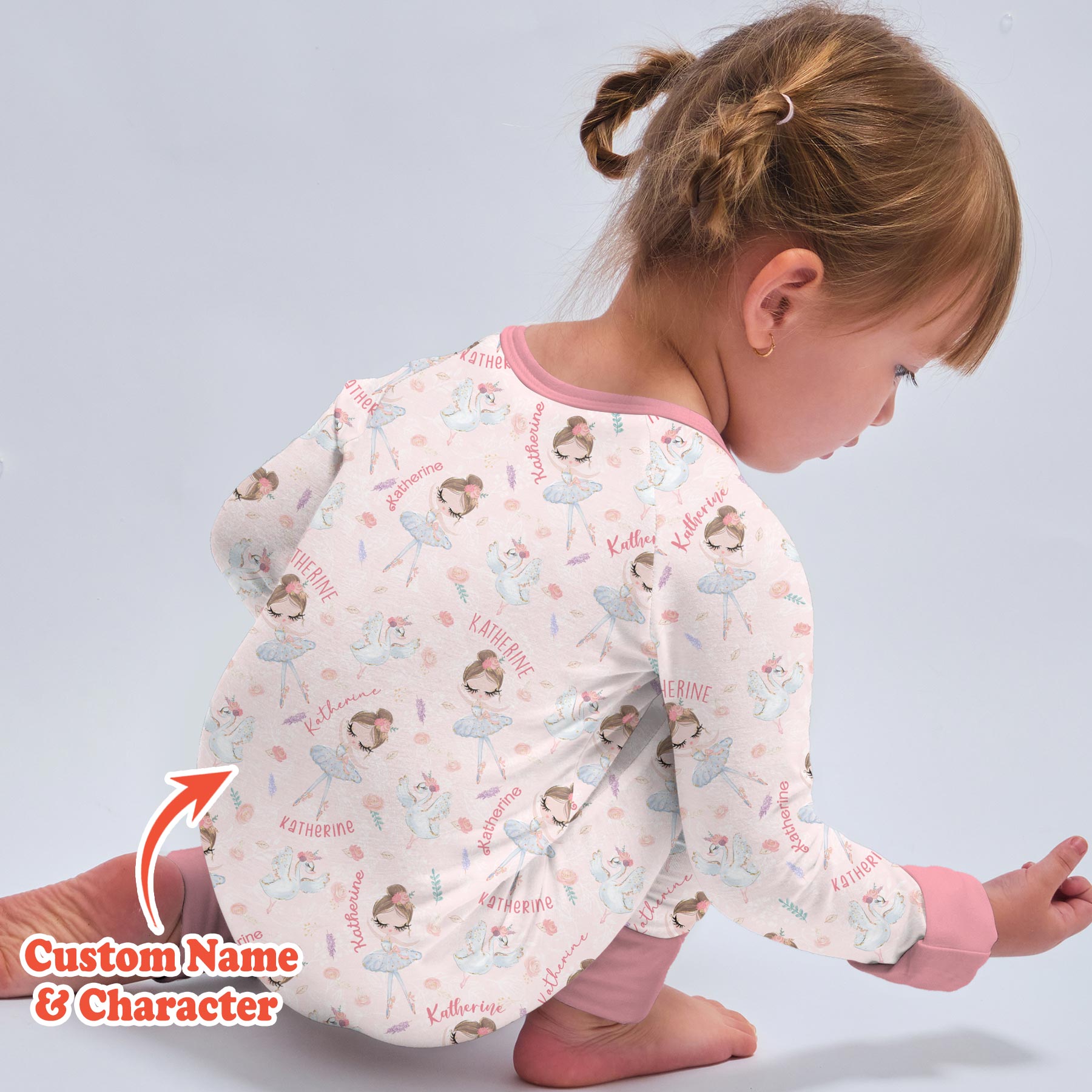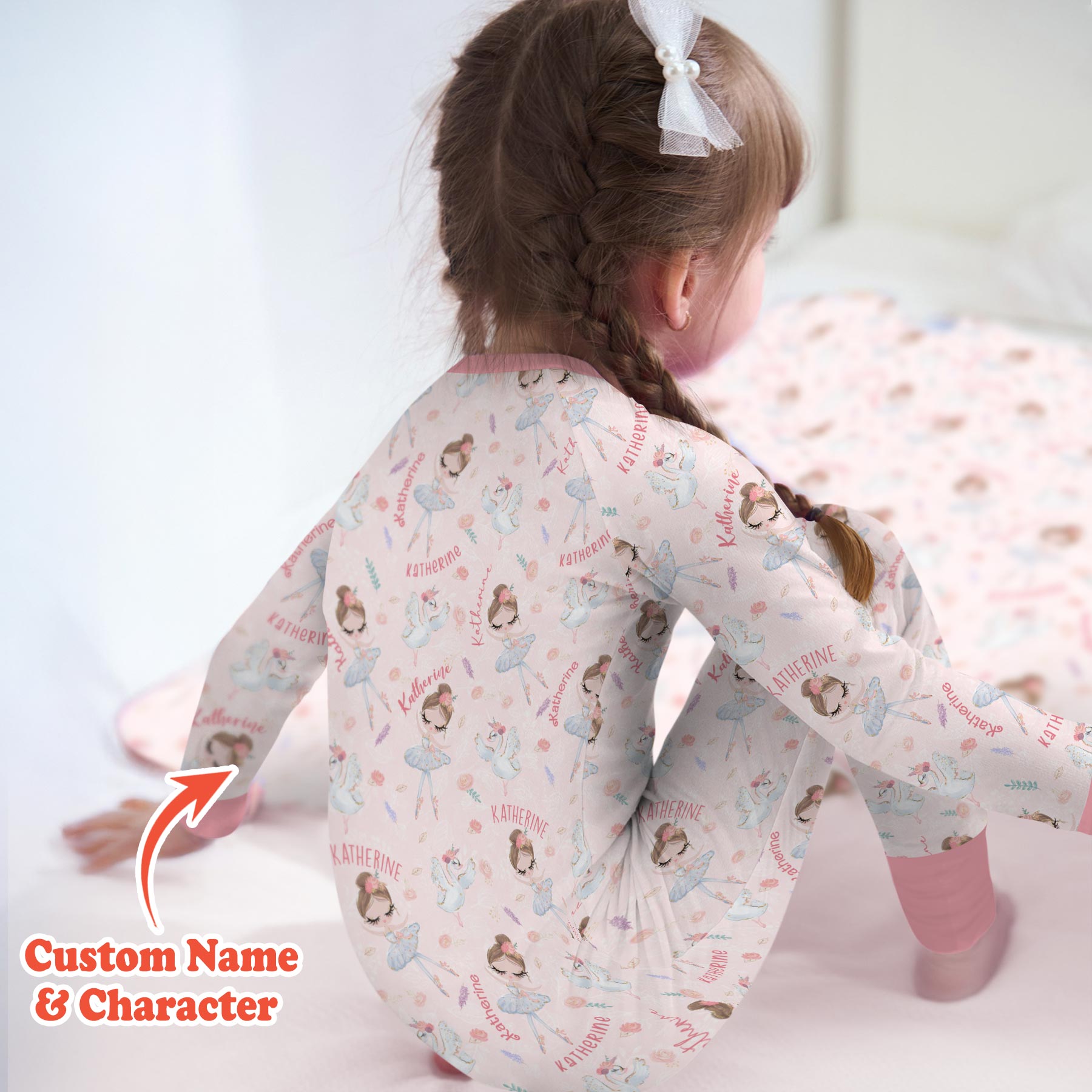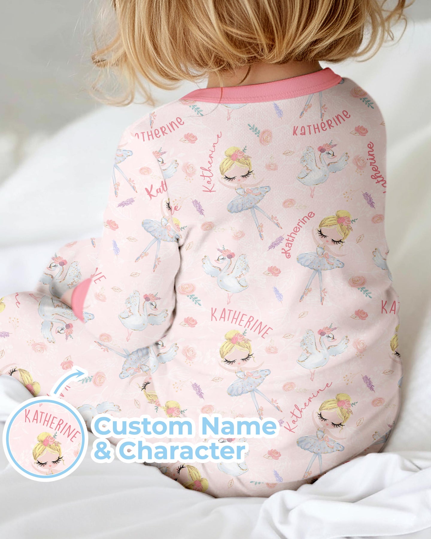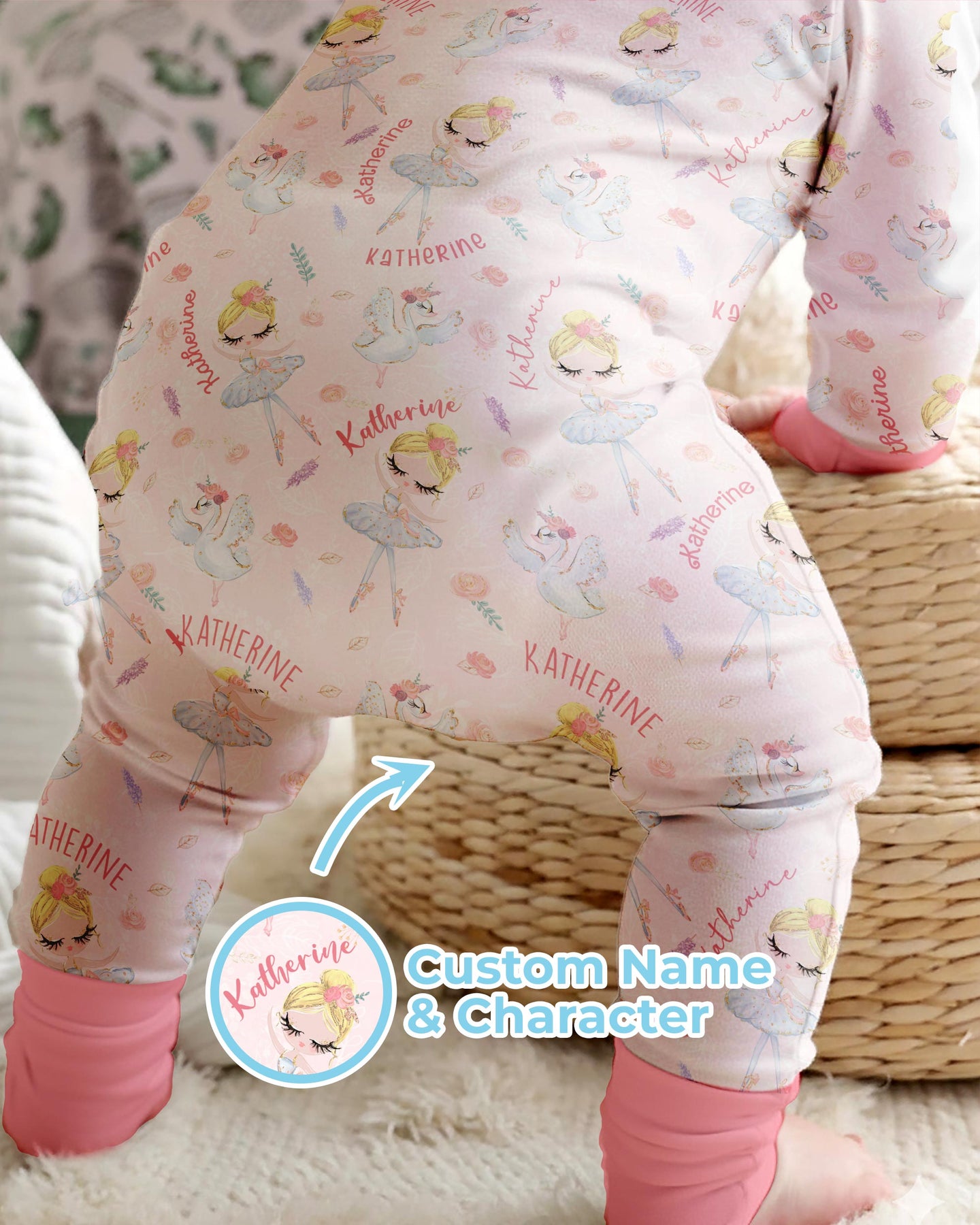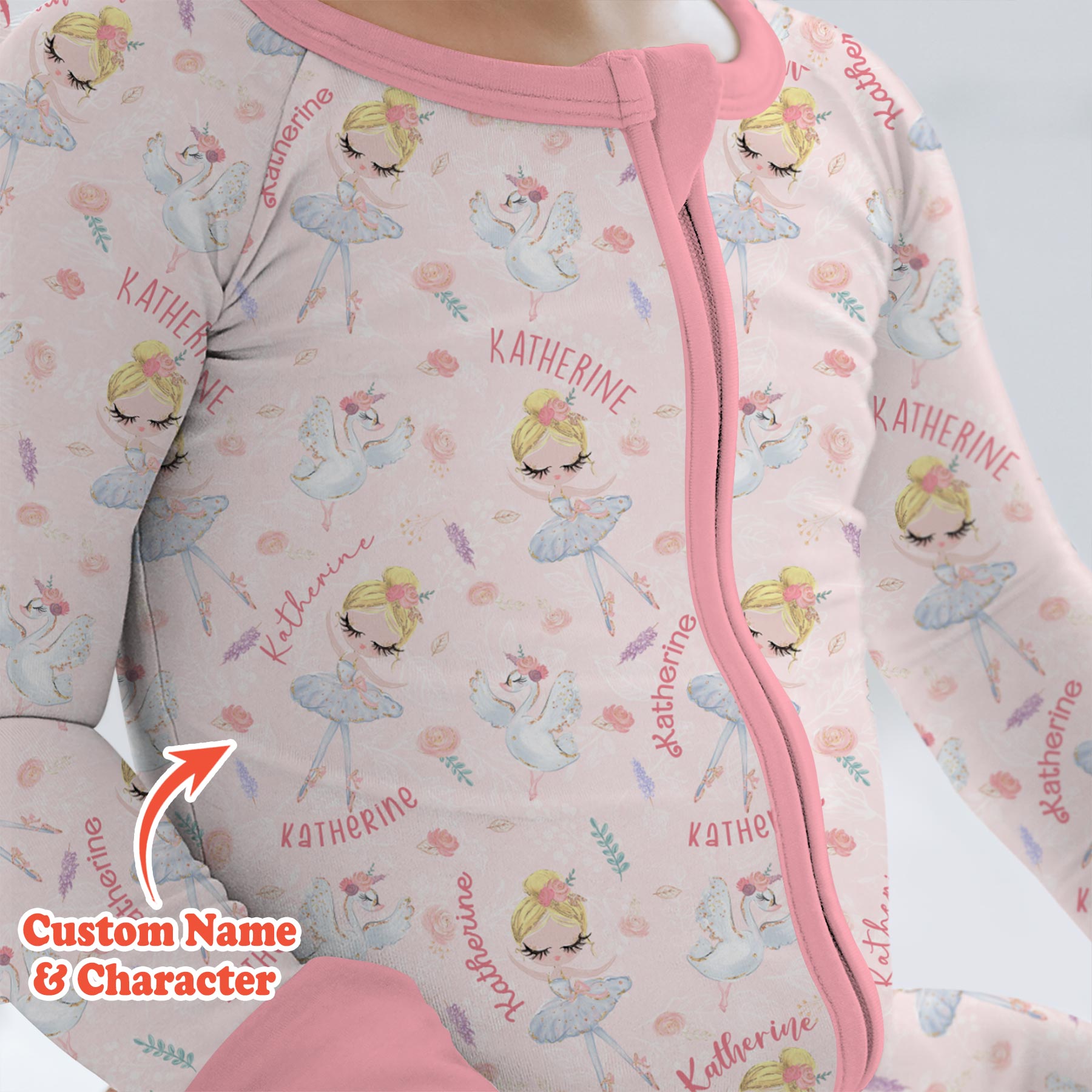 Graceful, sweet, and full of dreamy charm, Custom Name Ballerina Doll is perfect for little dancers and ballet lovers. This elegant print features delicate ballerina dolls, soft florals, graceful swans, and your child’s custom name woven throughout for a truly special touch.