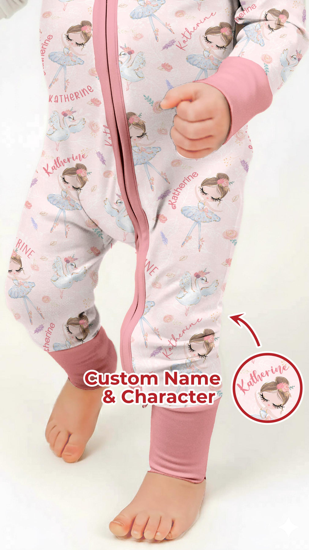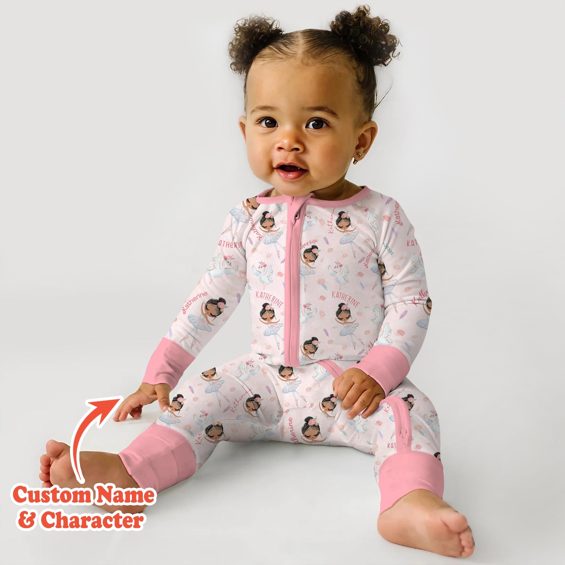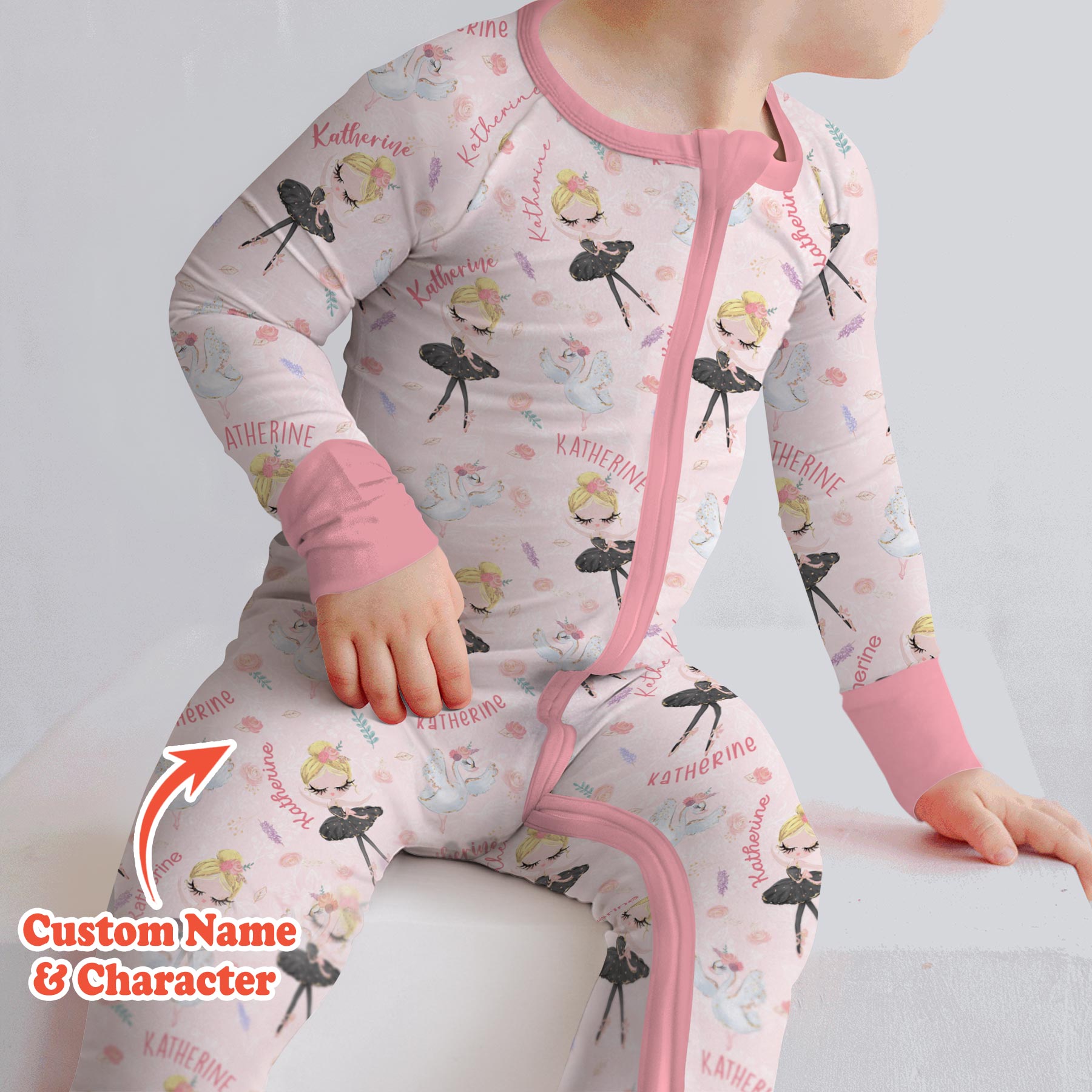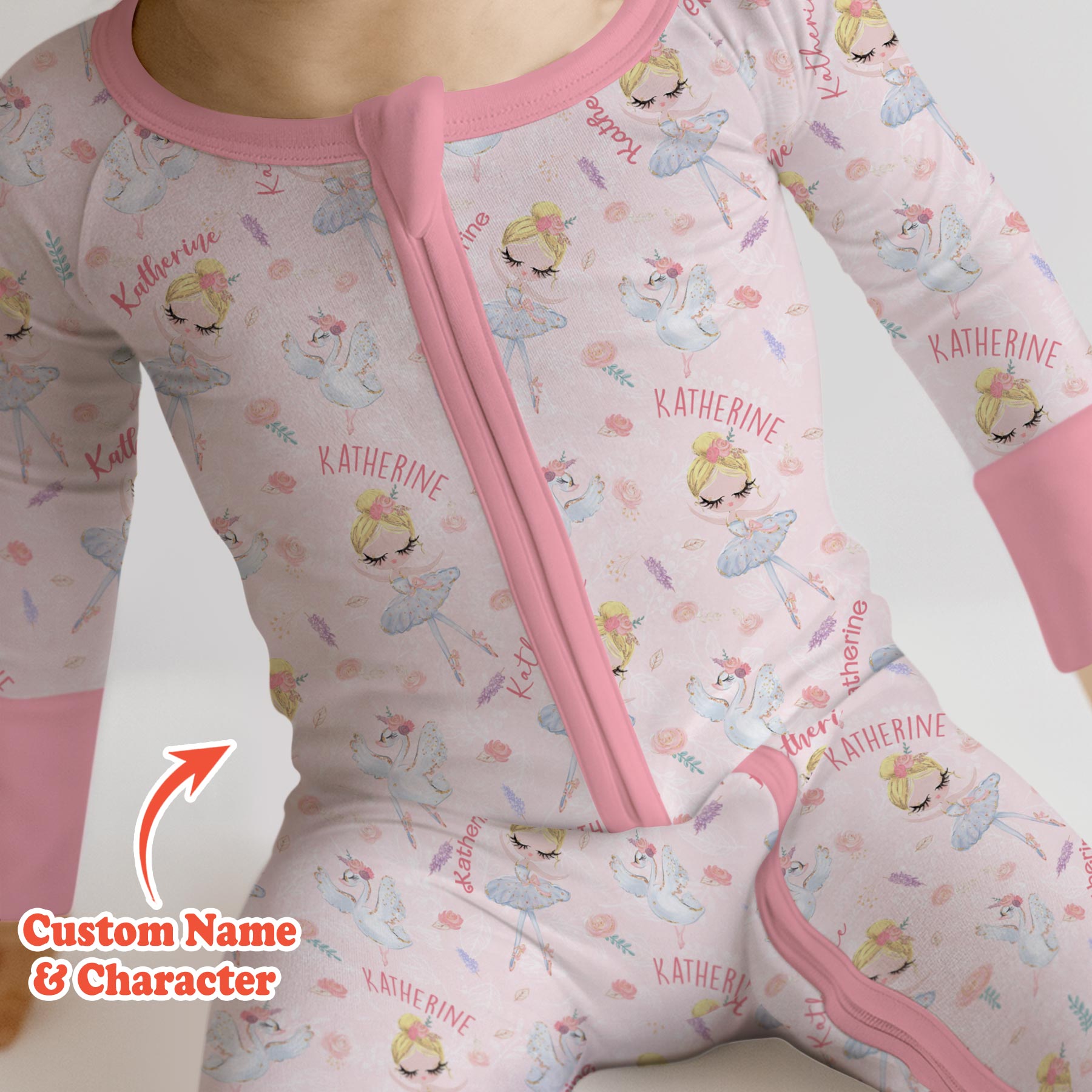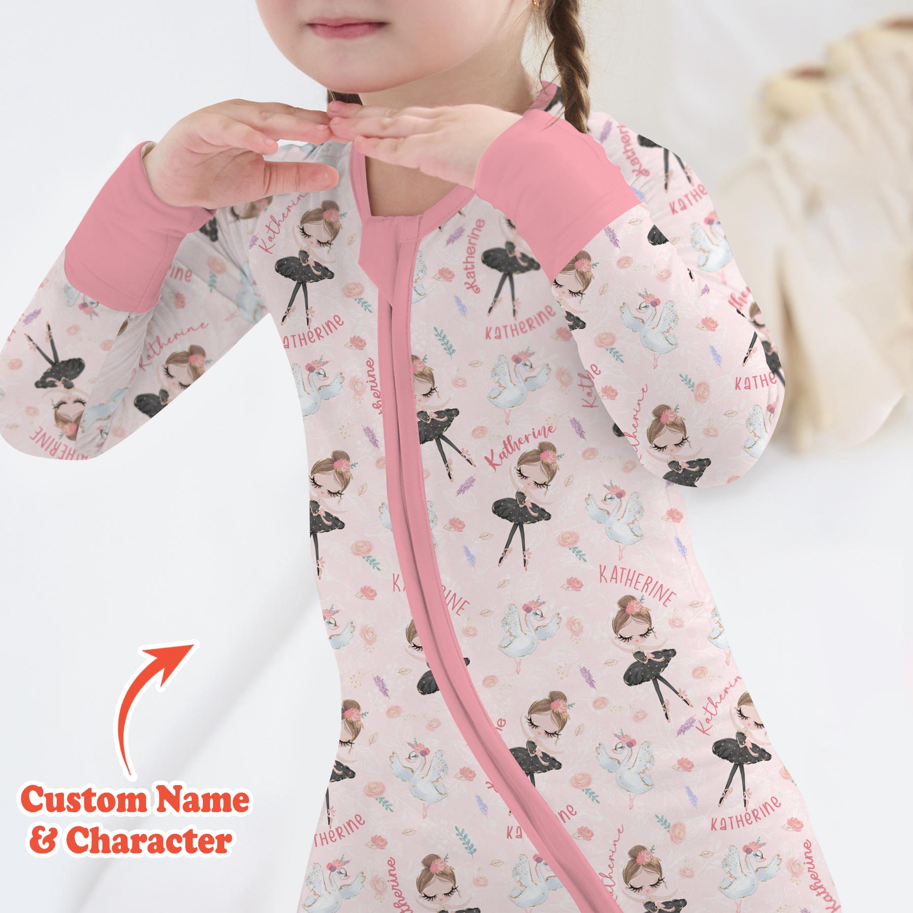 Graceful, sweet, and full of dreamy charm, Custom Name Ballerina Doll is perfect for little dancers and ballet lovers. This elegant print features delicate ballerina dolls, soft florals, graceful swans, and your child’s custom name woven throughout for a truly special touch.