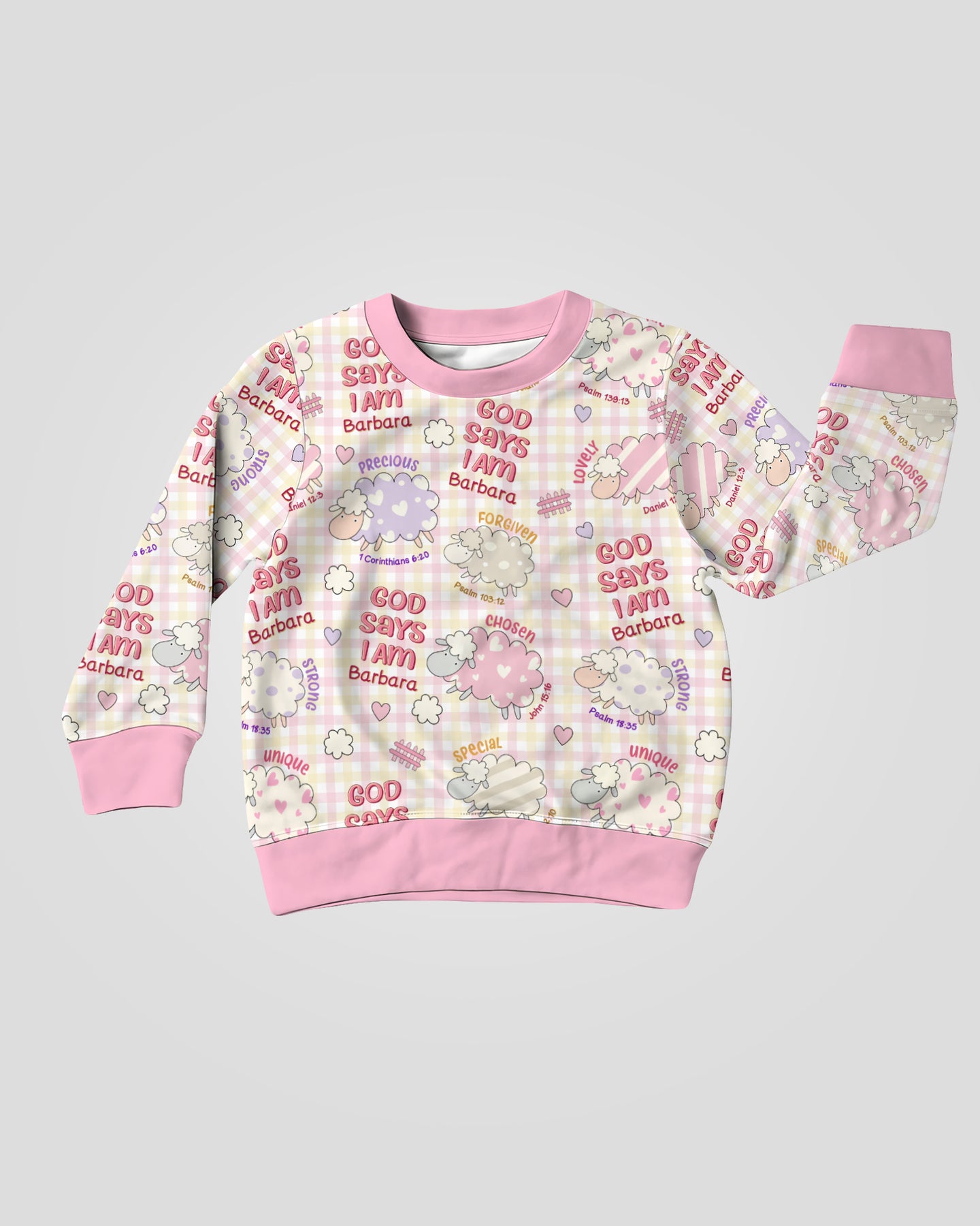 Little Lamb God Says I Am Custom Name Crewneck Sweatshirt