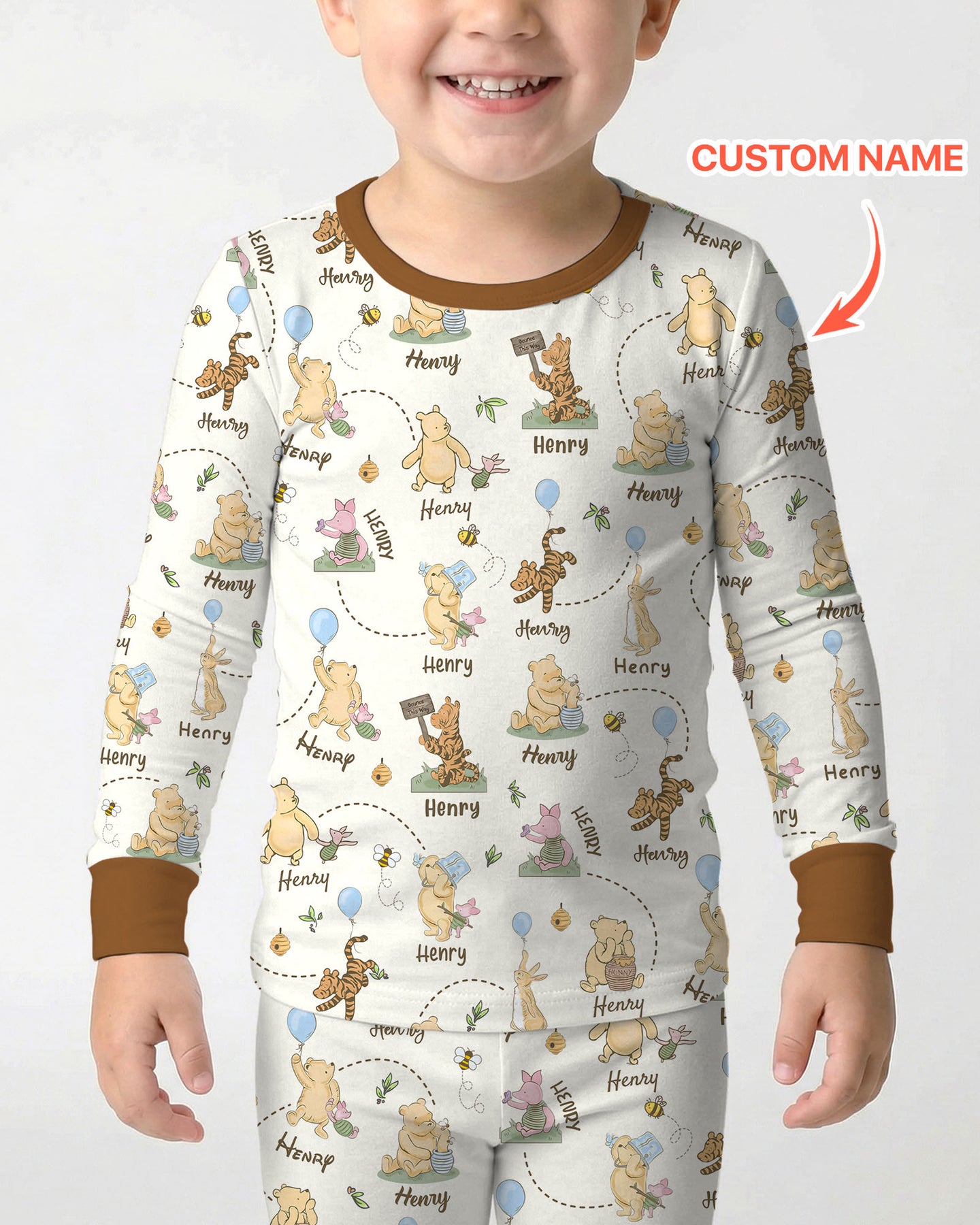 Once Upon A Bear Custom Name Two Piece Long Sleeve Pajama Set