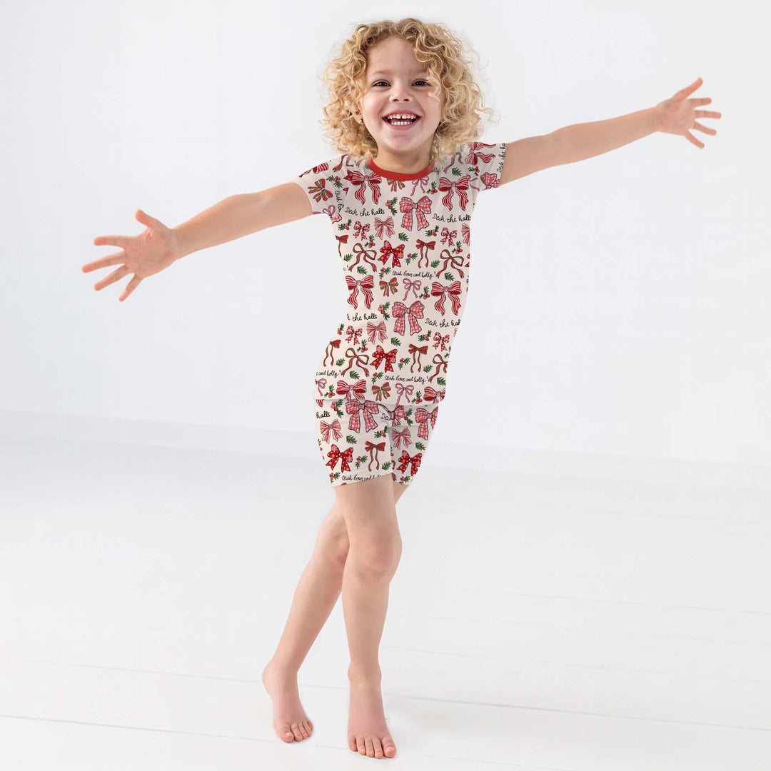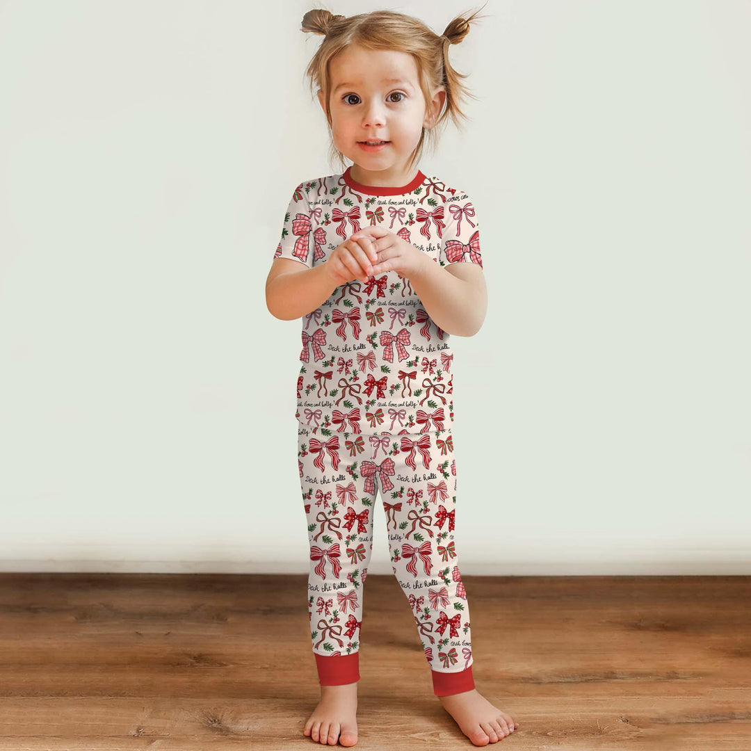 Pretty, playful, and oh-so-festive! This darling print features dainty red bows, holly sprigs, and sweet Christmas charm — perfect for your little holiday fashionista. Made from buttery-soft, breathable bamboo for the dreamiest mix of cozy and cute all season long. 🎄💖✨