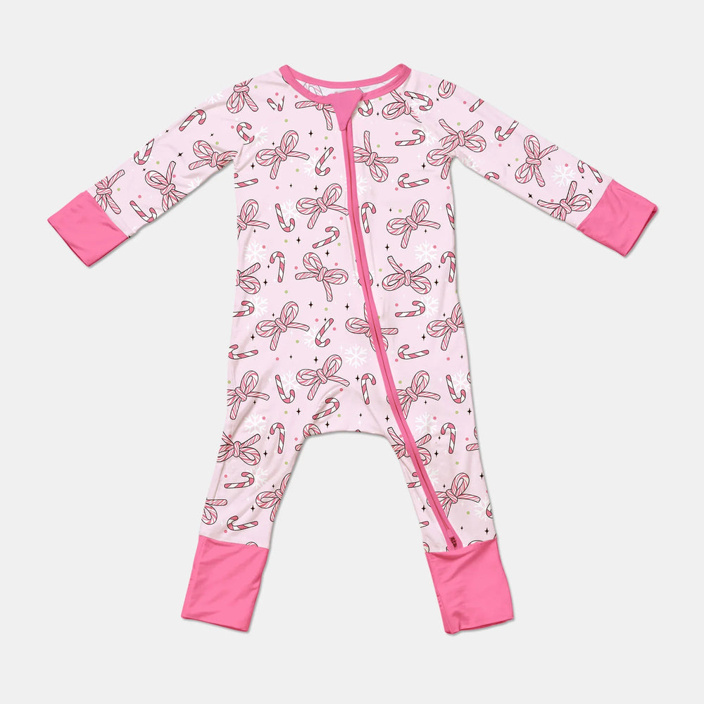🍬 Bamboo Zippies & PJs – Pink Candy Bows