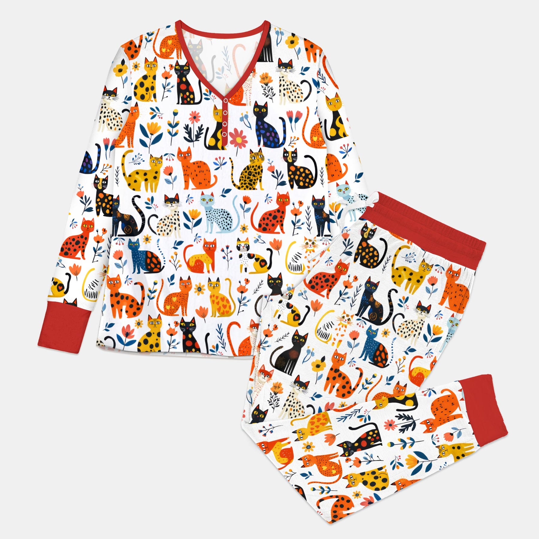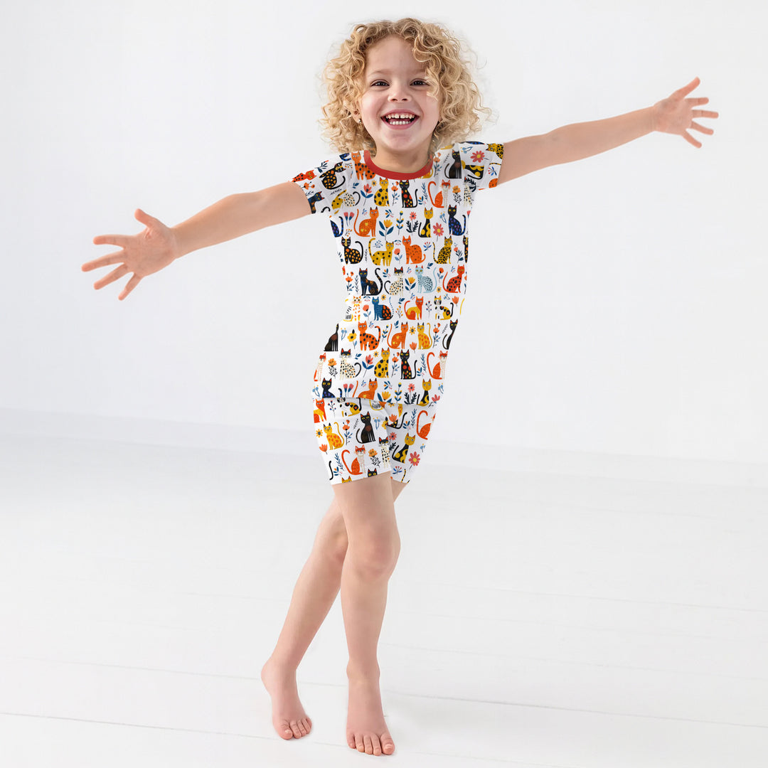 A playful all-over print featuring colorful cats and whimsical florals, creating a cheerful and cozy design made for little animal lovers. Bright, charming, and full of personality, this artwork brings joy and imagination to everyday moments.