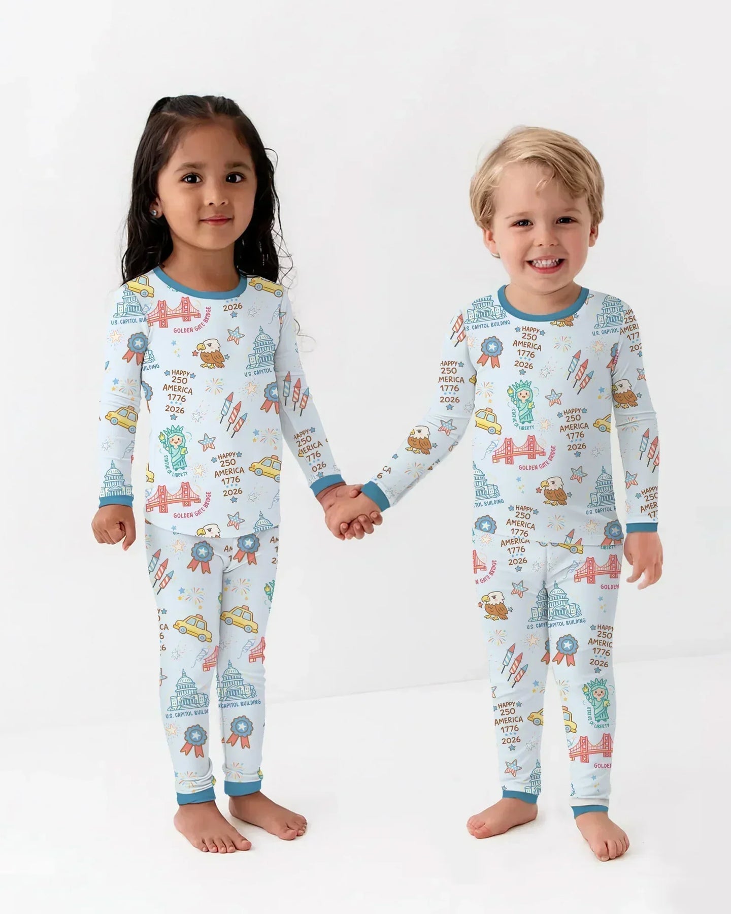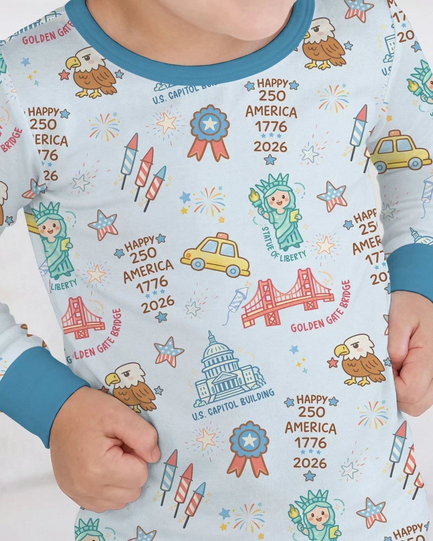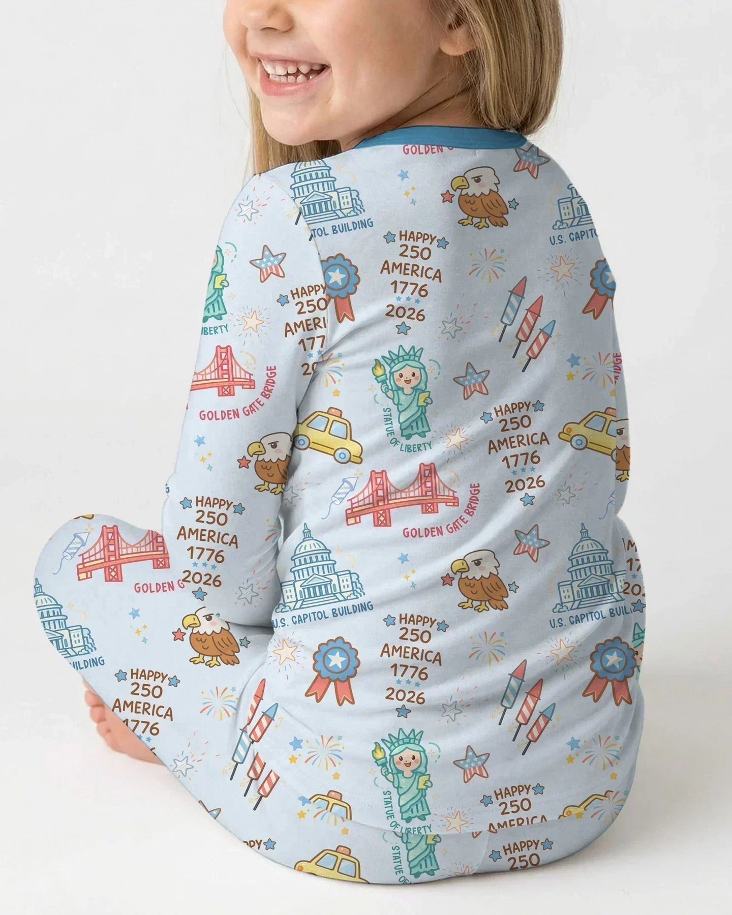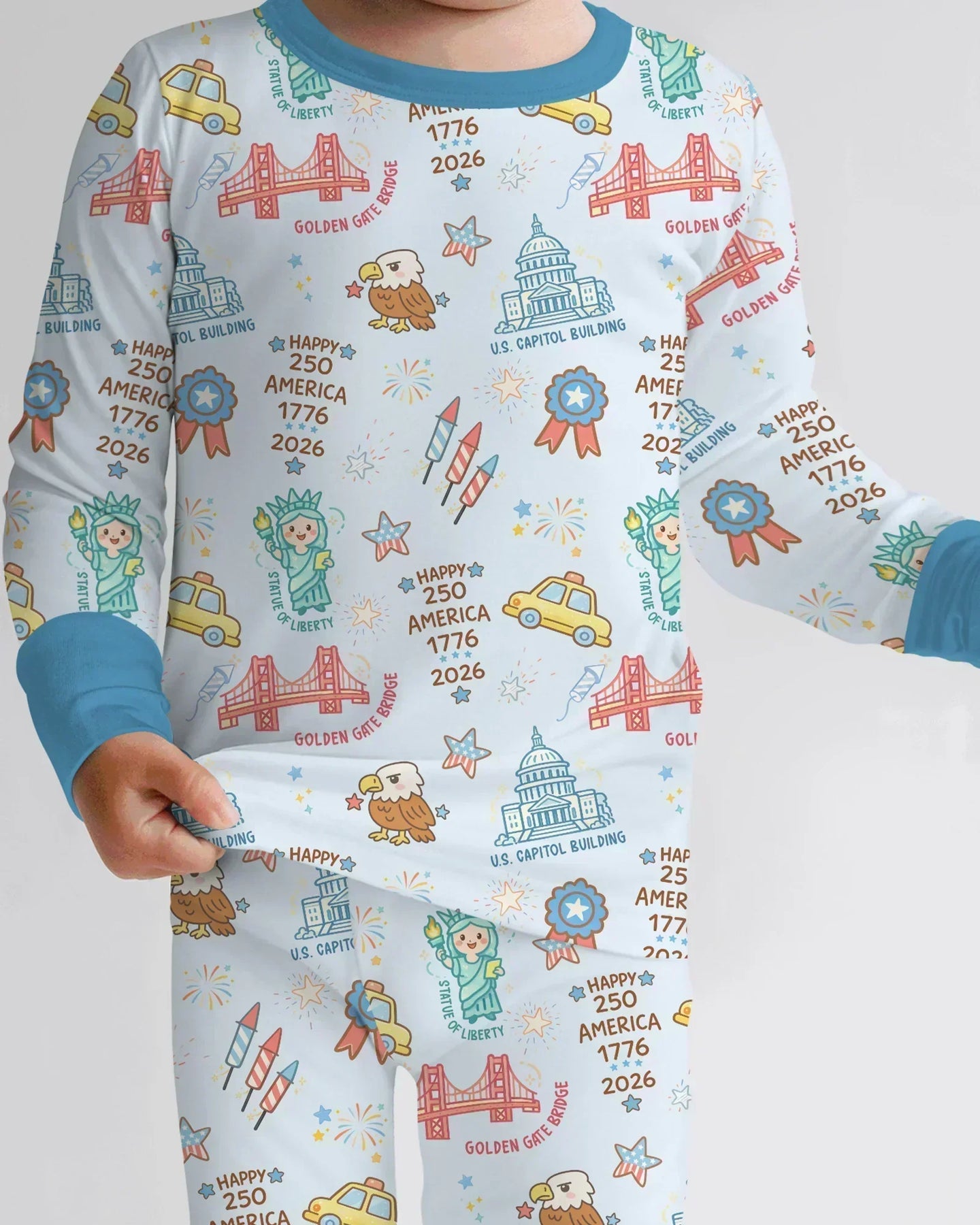 Celebrate American pride with our America 250 Pajama Collection, featuring playful patriotic icons inspired by U.S. history and landmarks. Made from ultra-soft, breathable fabric, this collection is perfect for cozy nights, family matching moments, and celebrating 250 years of America in comfort and style. 🇺🇸✨