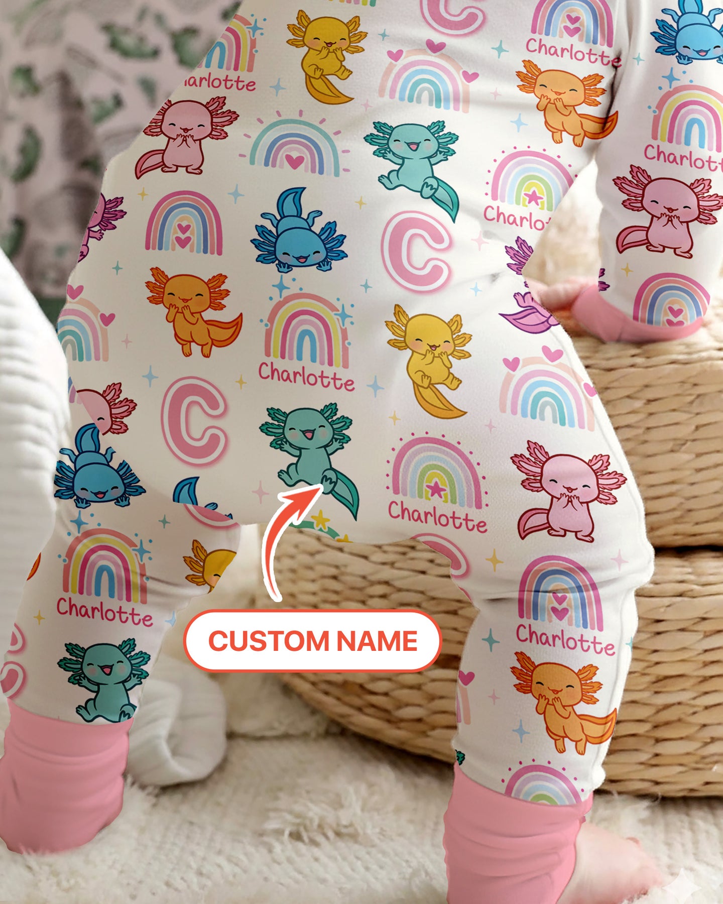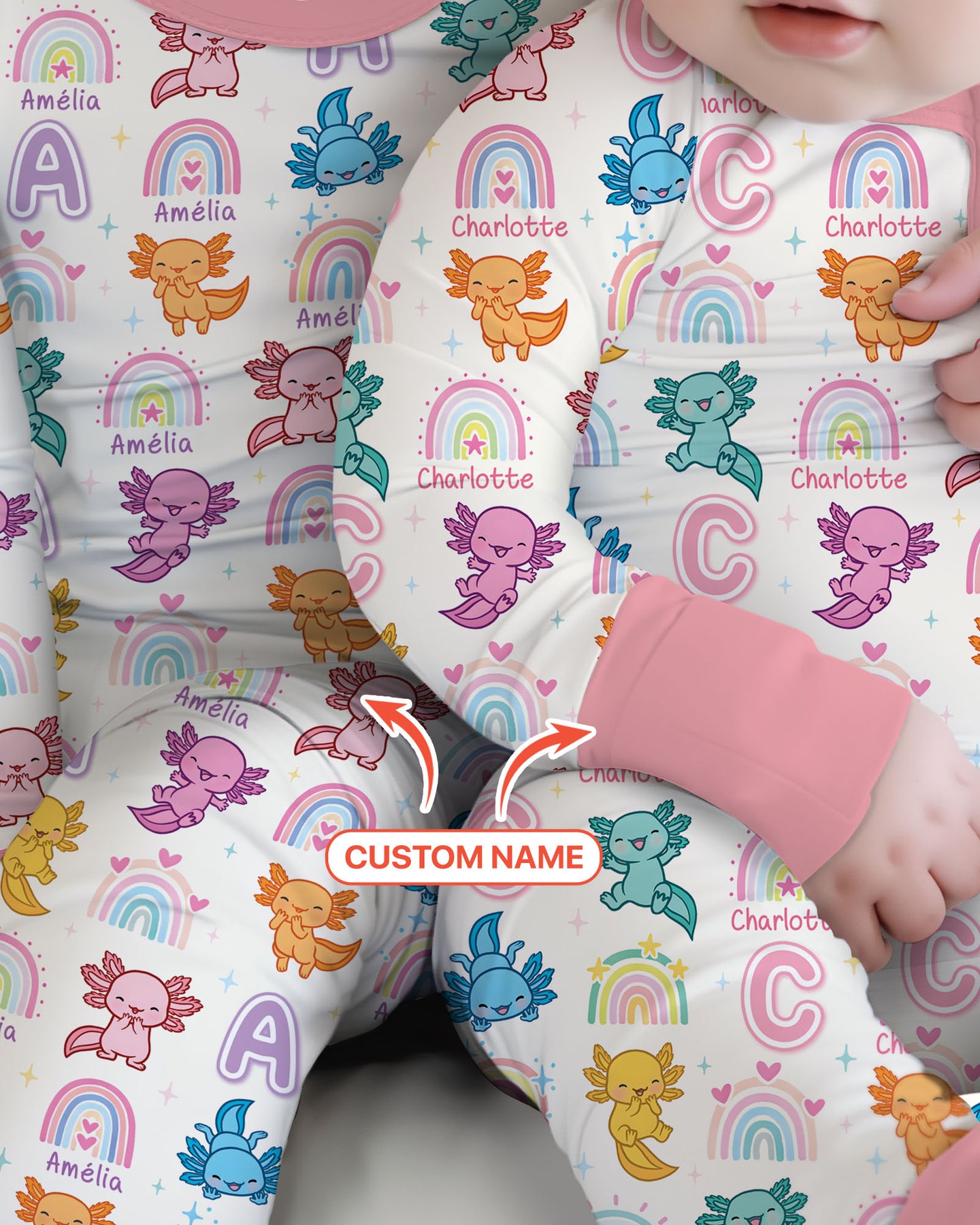 A fun and cheerful collection inspired by adorable axolotl characters, designed to spark joy and imagination for little ones. Playful axolotls, rainbows, and soft pastel tones come together to create a look that feels happy, gentle, and full of childhood wonder.