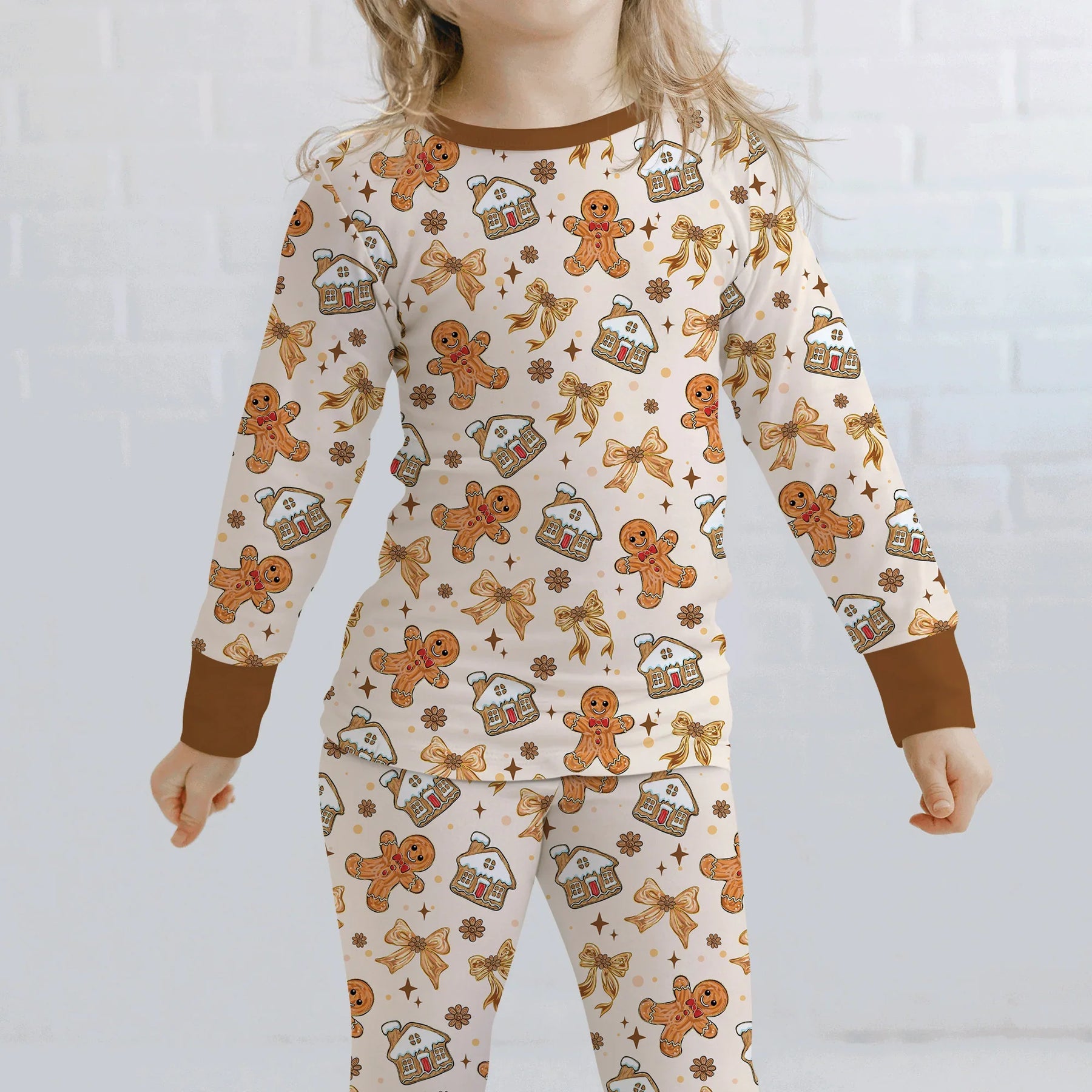 Brushstroke Gingerbread Two Piece Long Sleeve Pajama Set