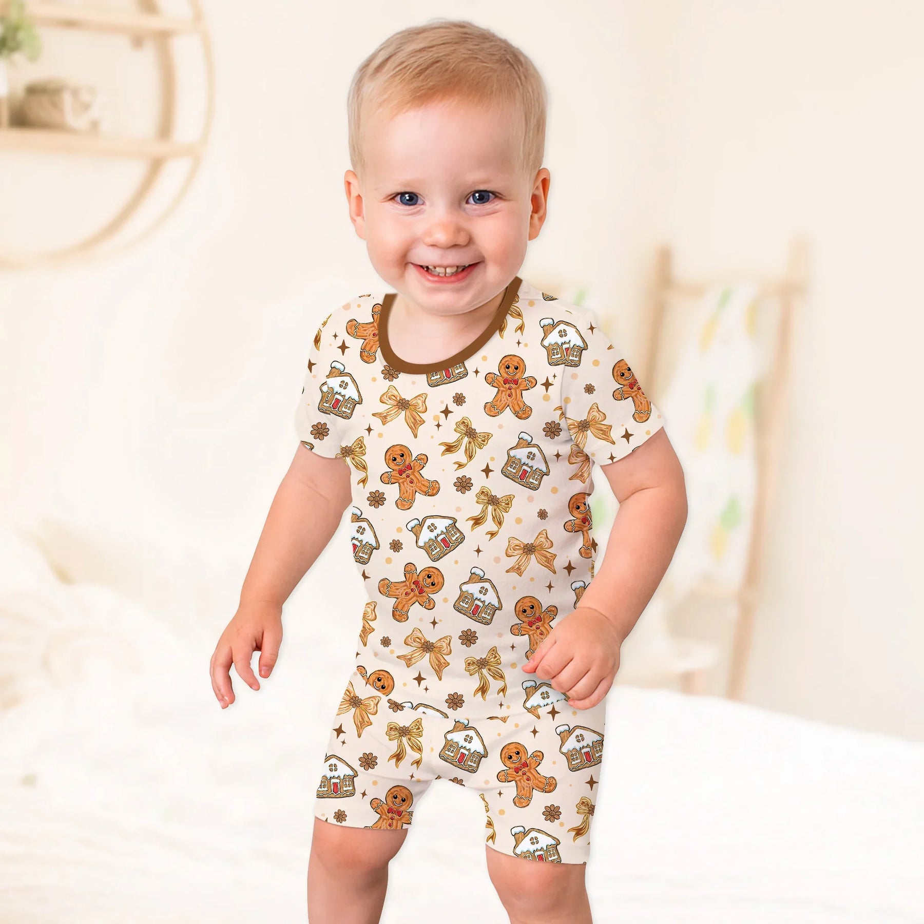 Brushstroke Gingerbread Two Piece Short Sleeve Shorts Pajama Set