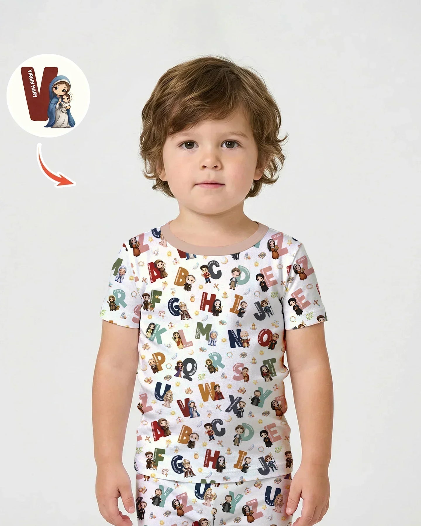 Catholic Saint ABCs Two Piece Short Sleeve Shorts Pajama Set