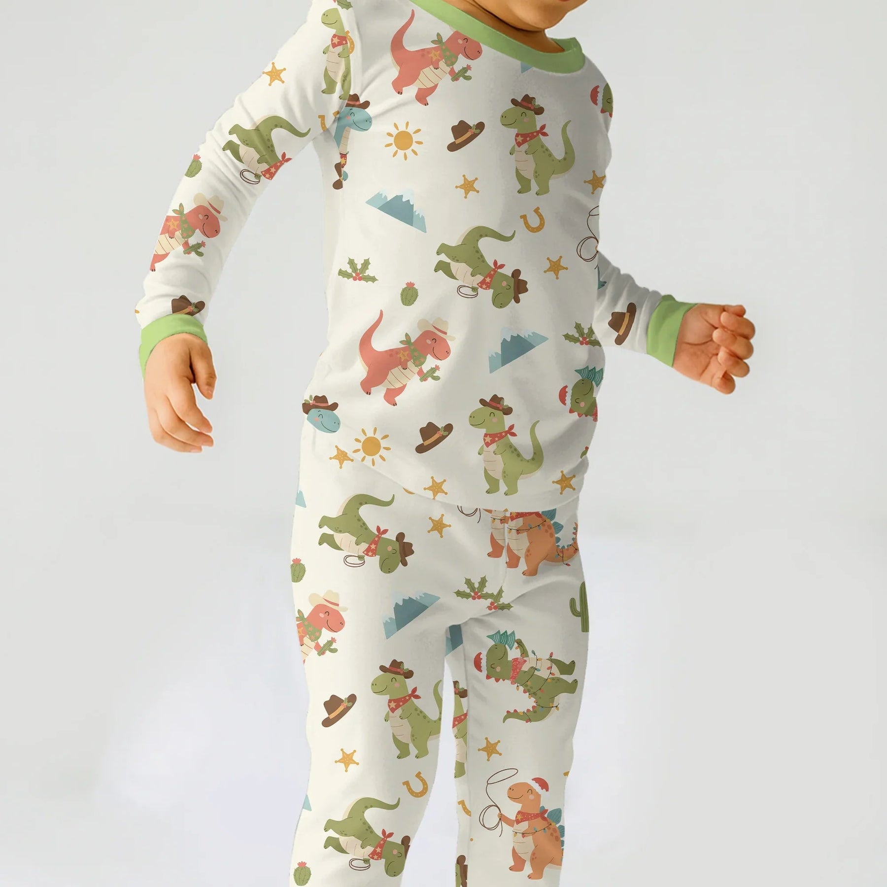 Christmas Cowboy Dinosaur Two Piece Long Sleeve Pajama Set