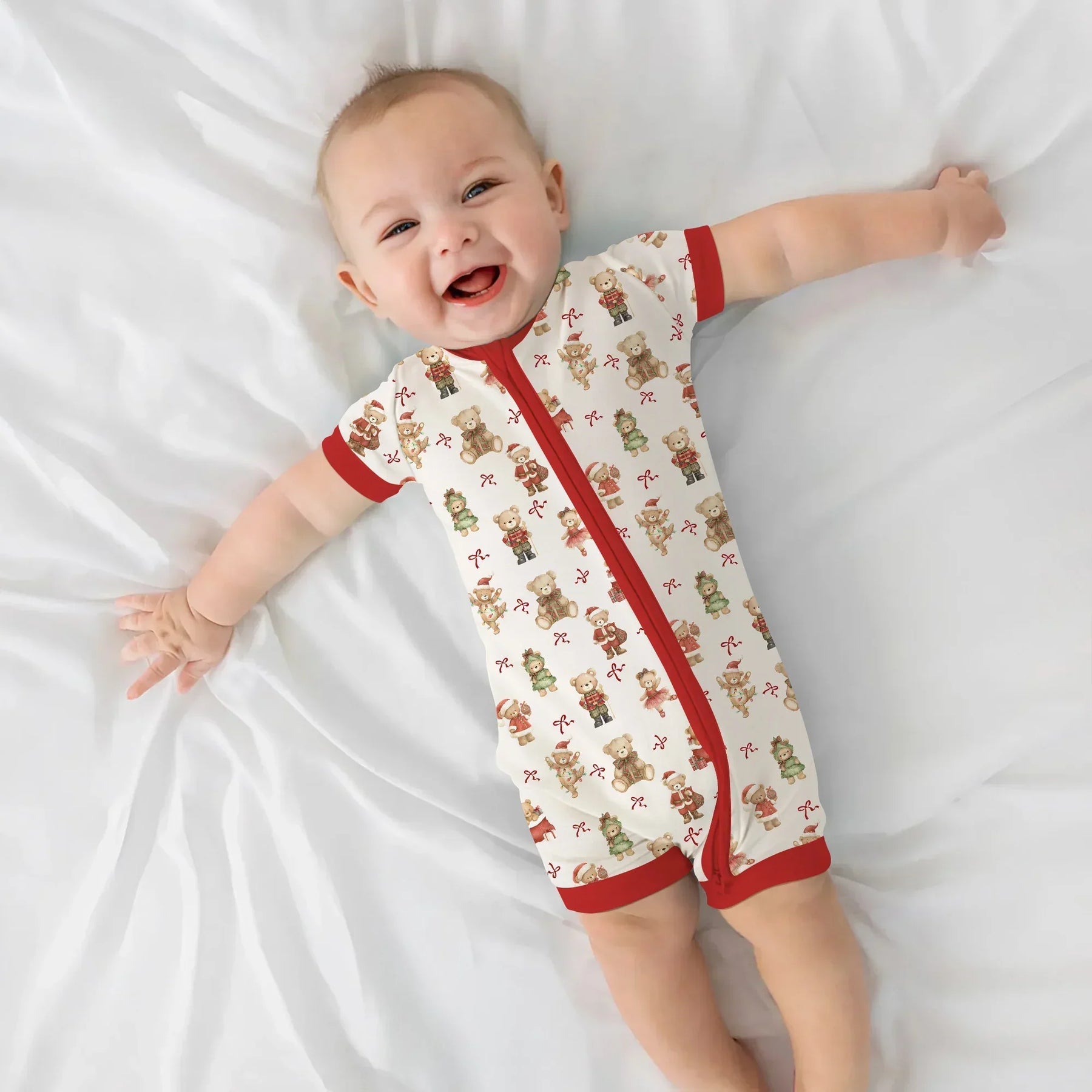 | Snuggle into the magic of Christmas with our Christmas Teddy Bears Bamboo Zippies & PJs! 🧸🎄 This adorable print features sweet holiday teddy bears dressed in festive outfits — ready to bring cozy cheer to bedtime. Made from our signature buttery-soft bamboo fabric, this set keeps your little one comfy, breathable, and warm all season long. Perfect for holiday photos, gifting, and cuddly winter nights — a Christmas classic they’ll want to wear again and again! ❄️❤️ |