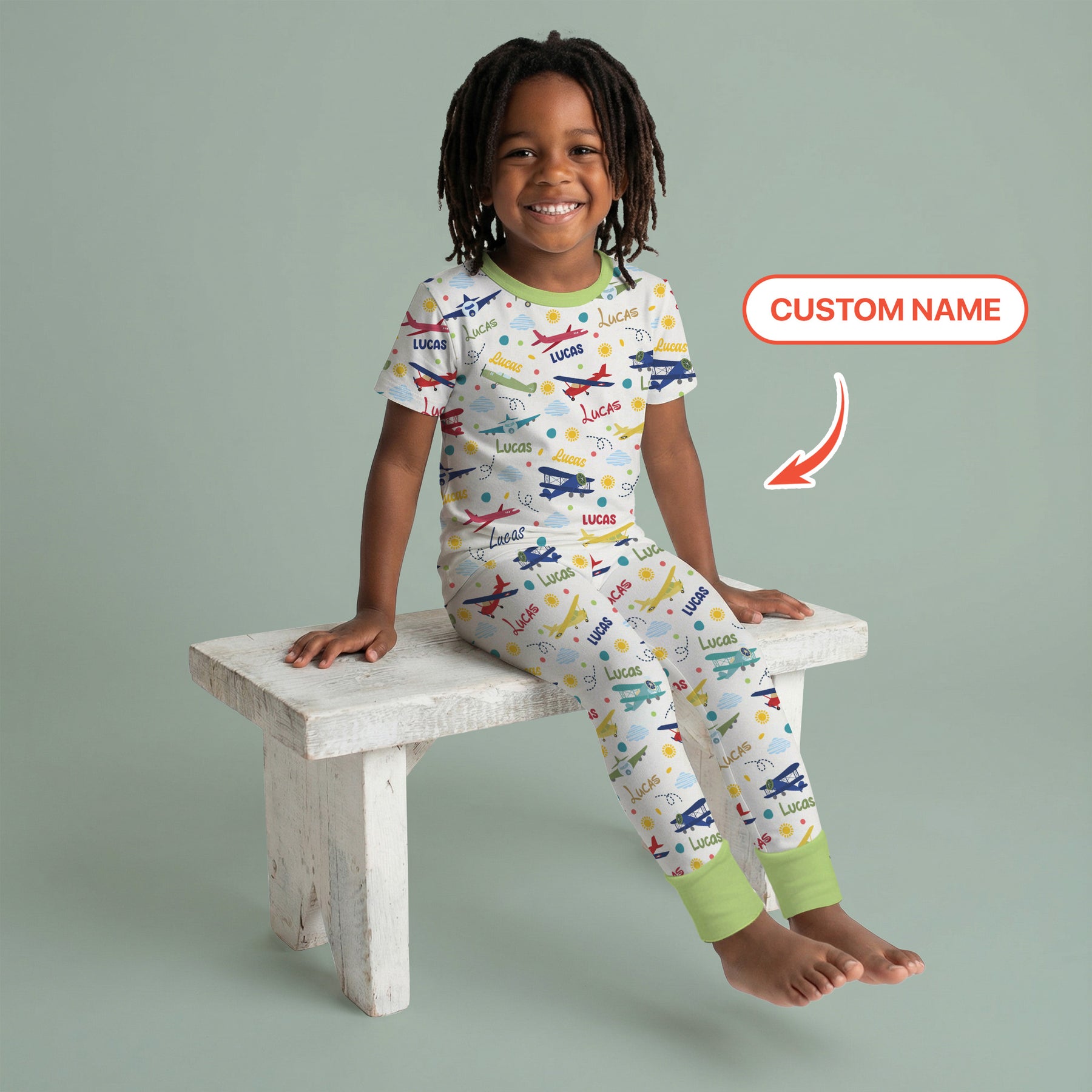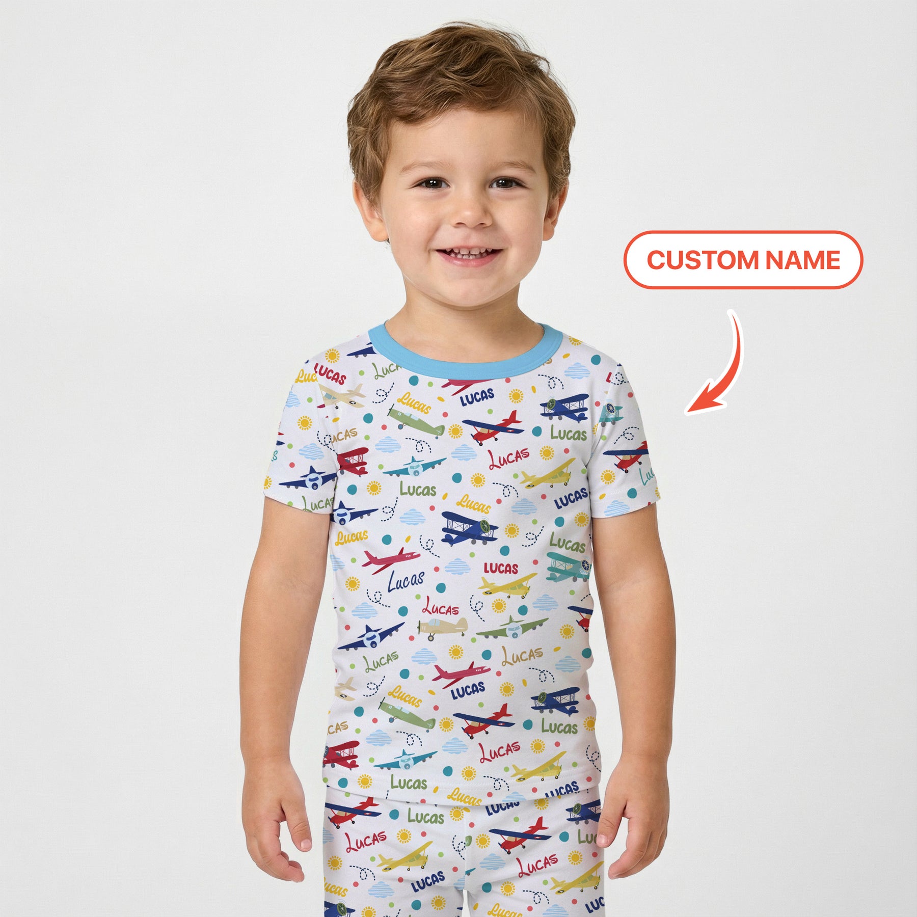 Custom Name Air Transport Two Piece Short Sleeve Pajama Set