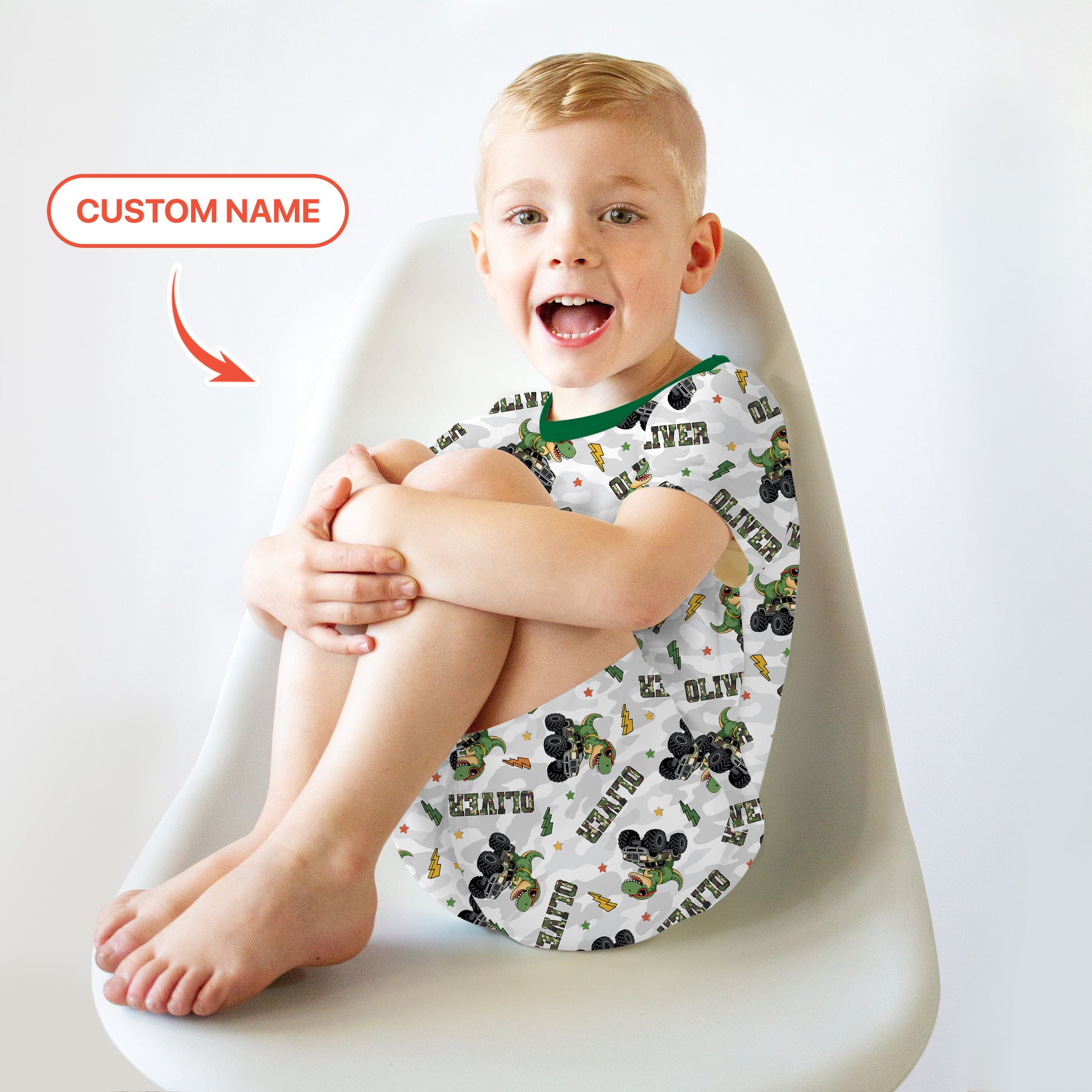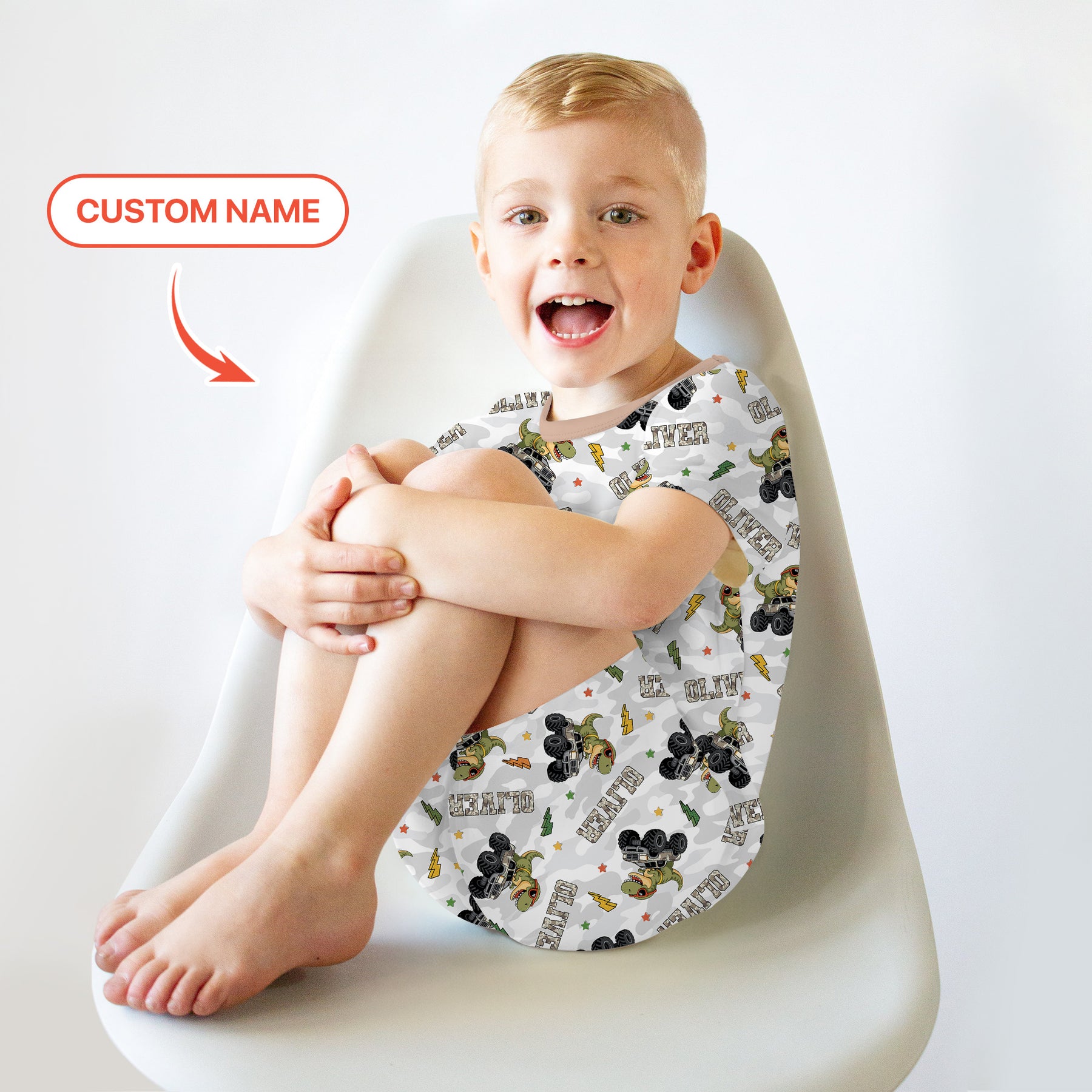 Let your little one enjoy big adventures with our "Custom Name Camo Trucker Dino"! Featuring a fun mix of dinosaurs, trucks, and camo patterns, this personalized piece adds excitement to every day. Soft, safe, and comfy for sensitive skin — and made even more special with your child’s name.