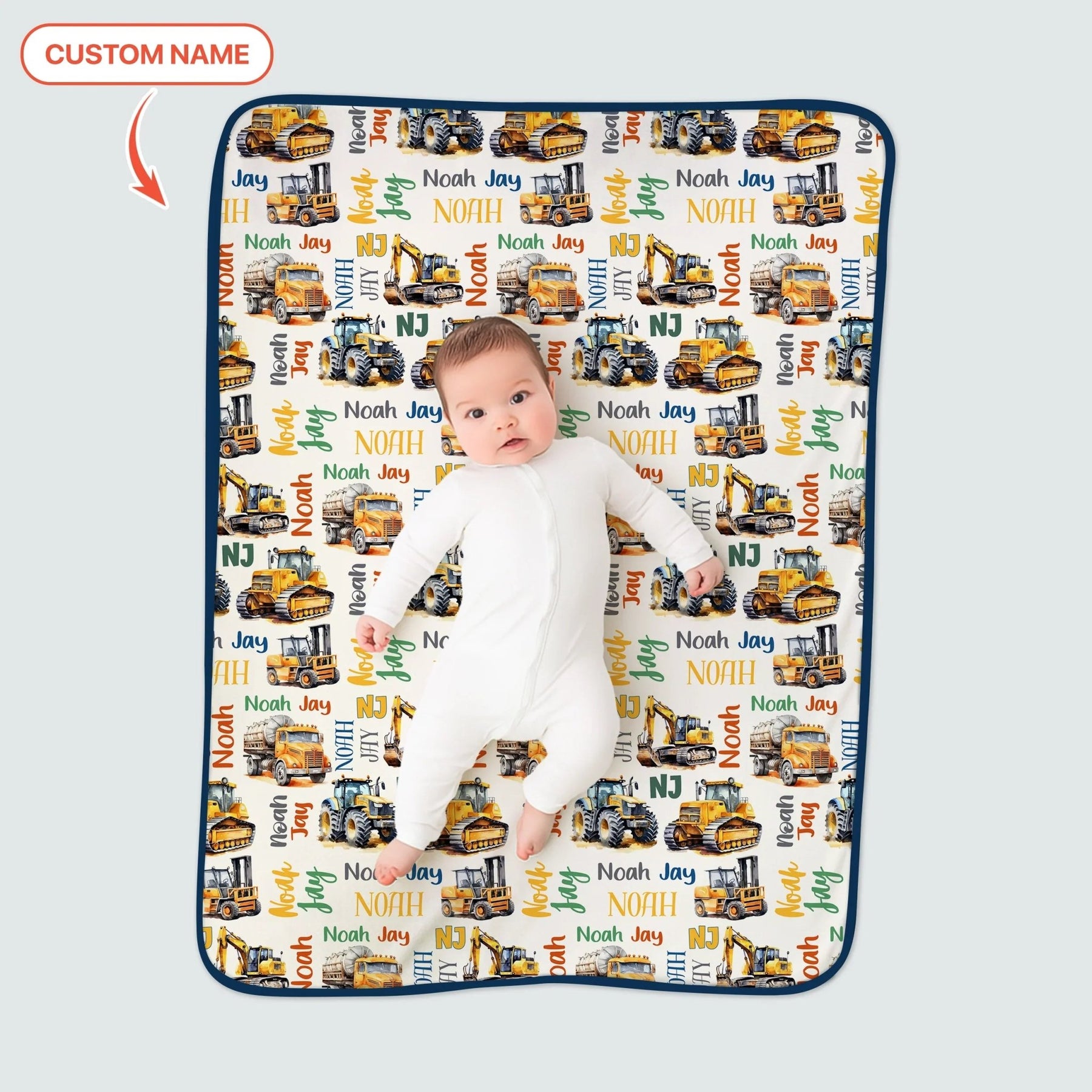 Snuggle up with our Custom Name Construction Trucks Blanket. Crafted from ultra-soft, breathable bamboo fabric, this blanket features playful construction truck designs and can be personalized with your child’s name. Perfect for cuddles, naps, and keeping your little builder cozy.