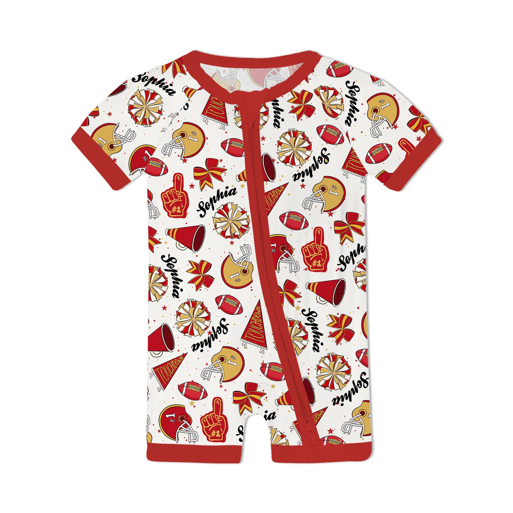 Bring big team spirit to bedtime with our Custom Name Football Cheerleader Bamboo Zippies & PJMs! 🏈📣✨