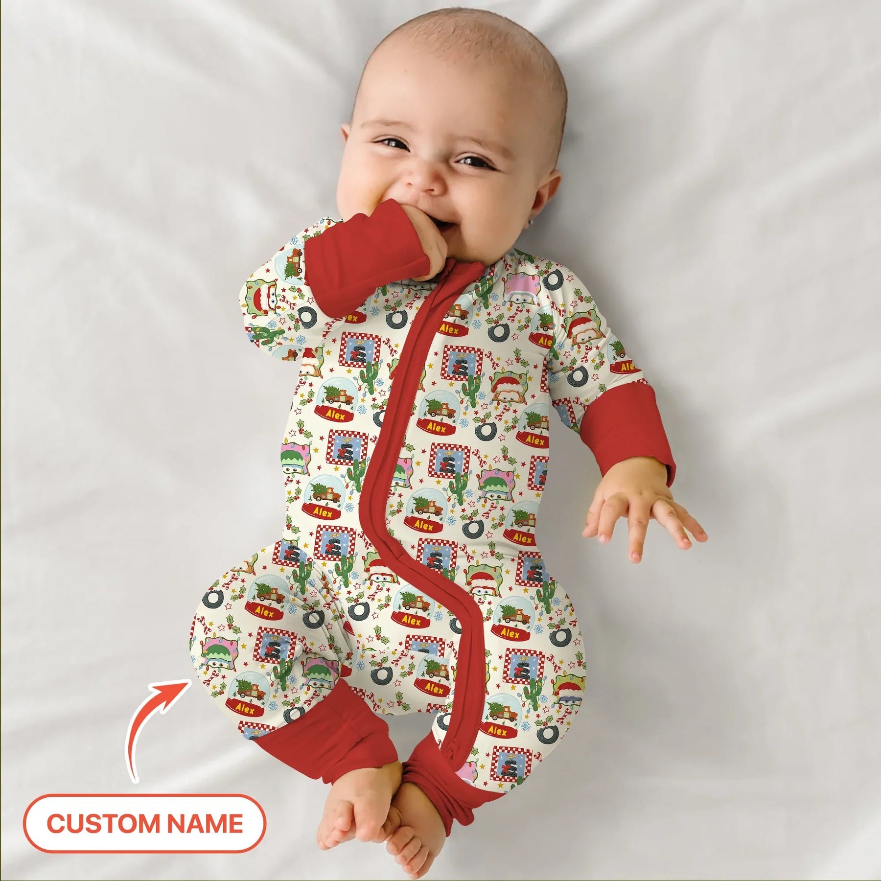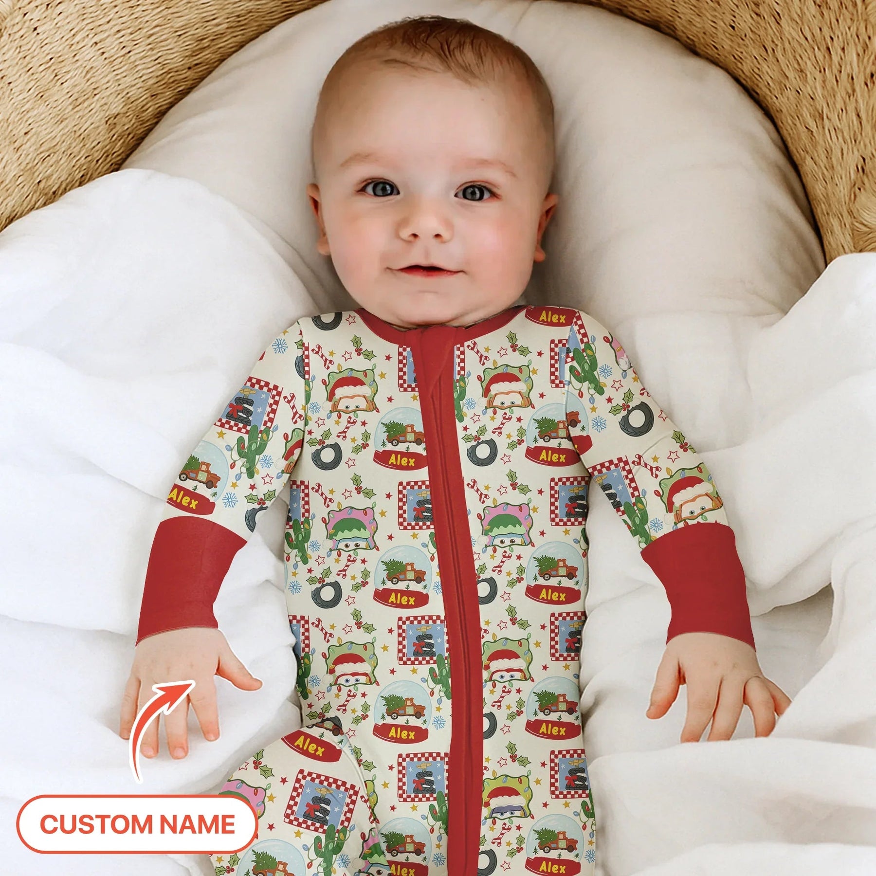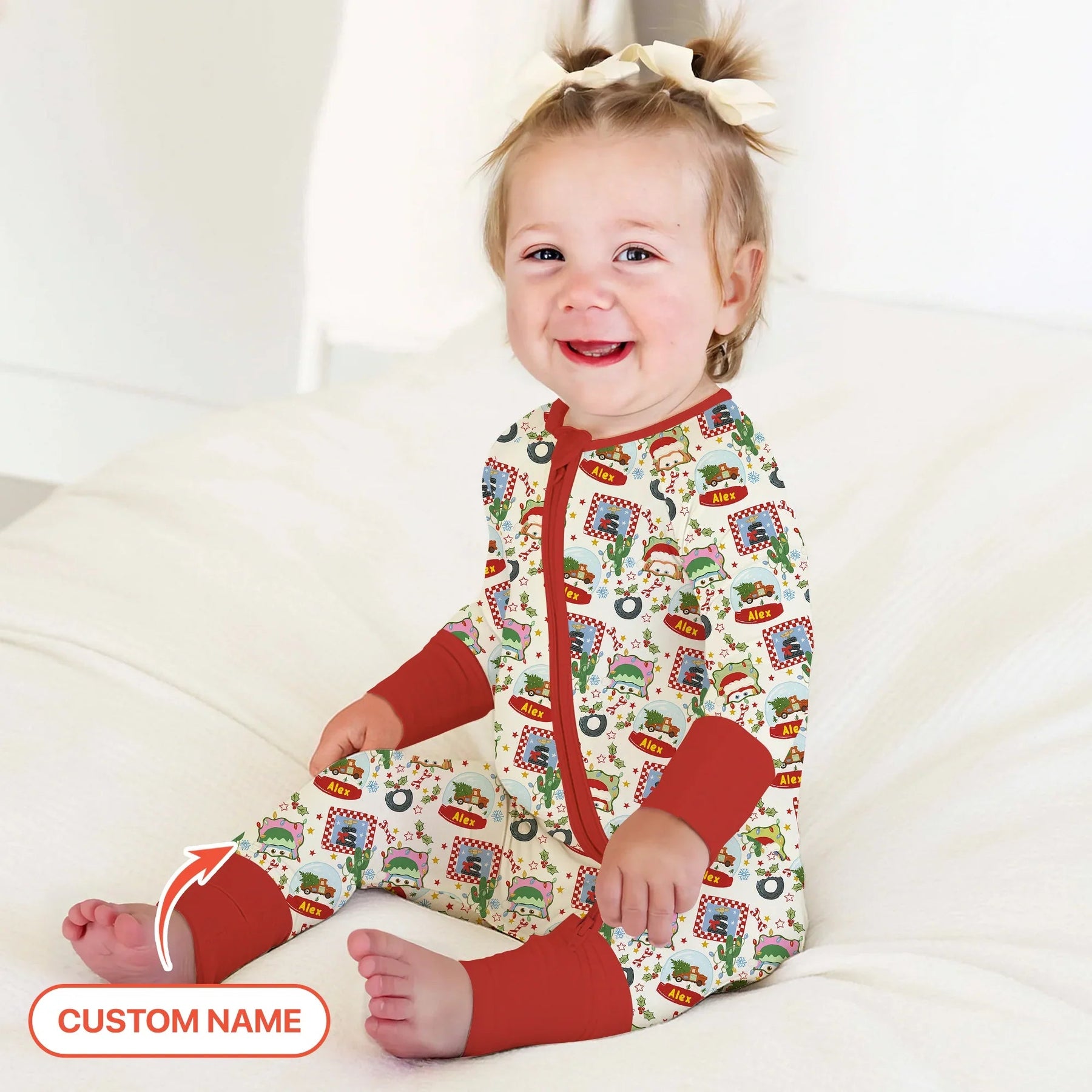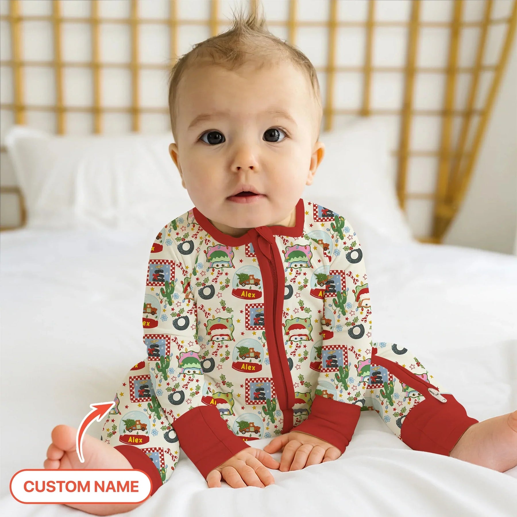 The “Christmas Cars” Collection 🚗🎄 captures the joy of the holidays on the go! Featuring festive cars loaded with presents, trees, and Christmas cheer, each cozy bamboo pajama can be personalized with your child’s name—perfect for merry adventures and family celebrations all season long.