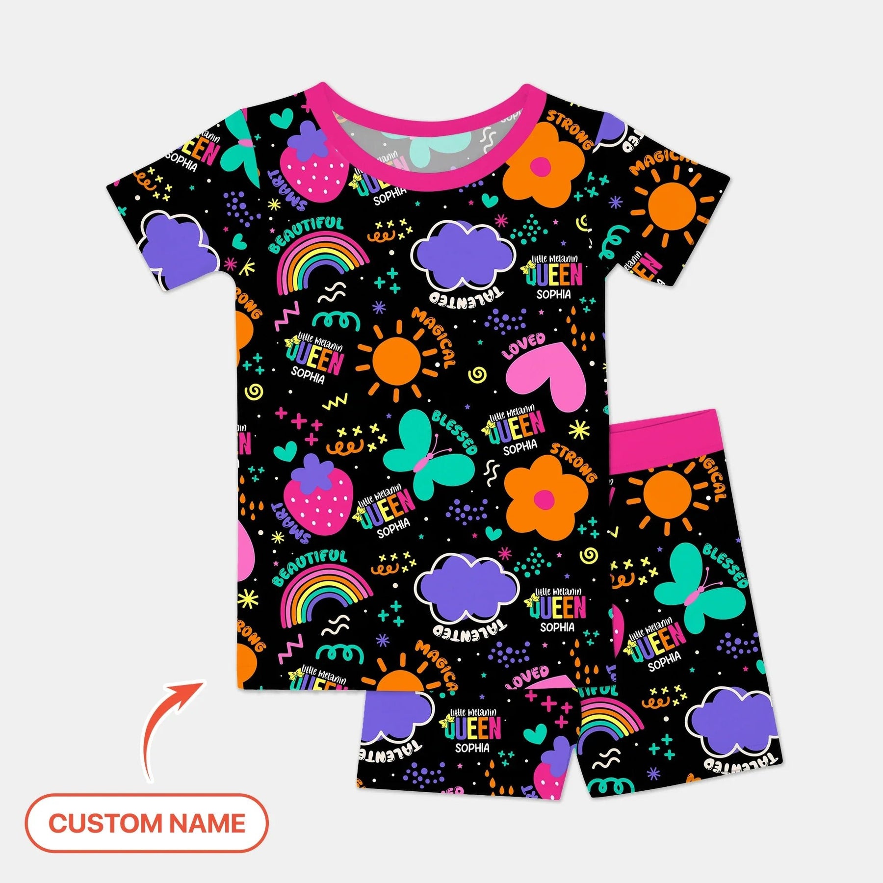 Custom Name Little Melanin Queen Two Piece Short Sleeve Shorts Pajama Set