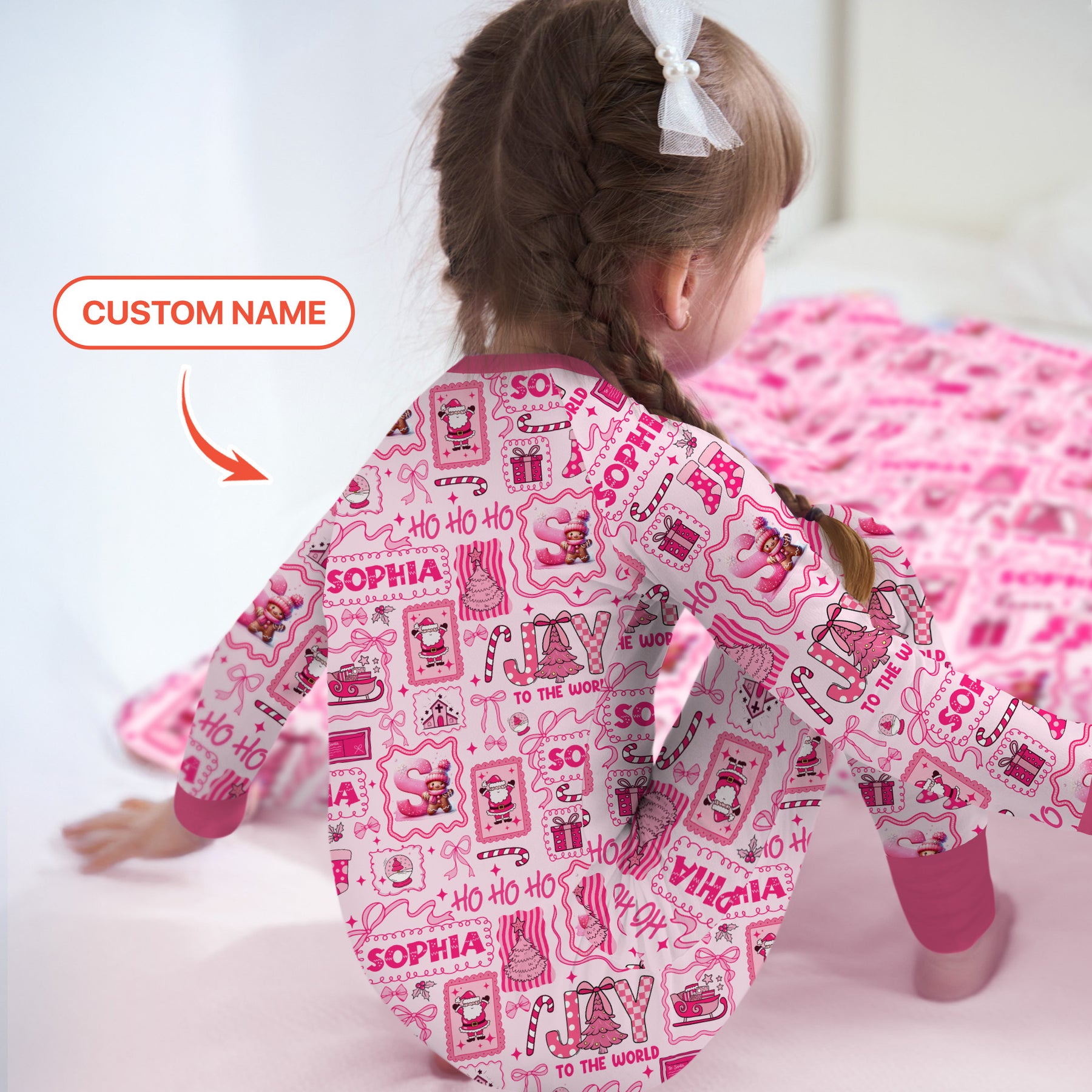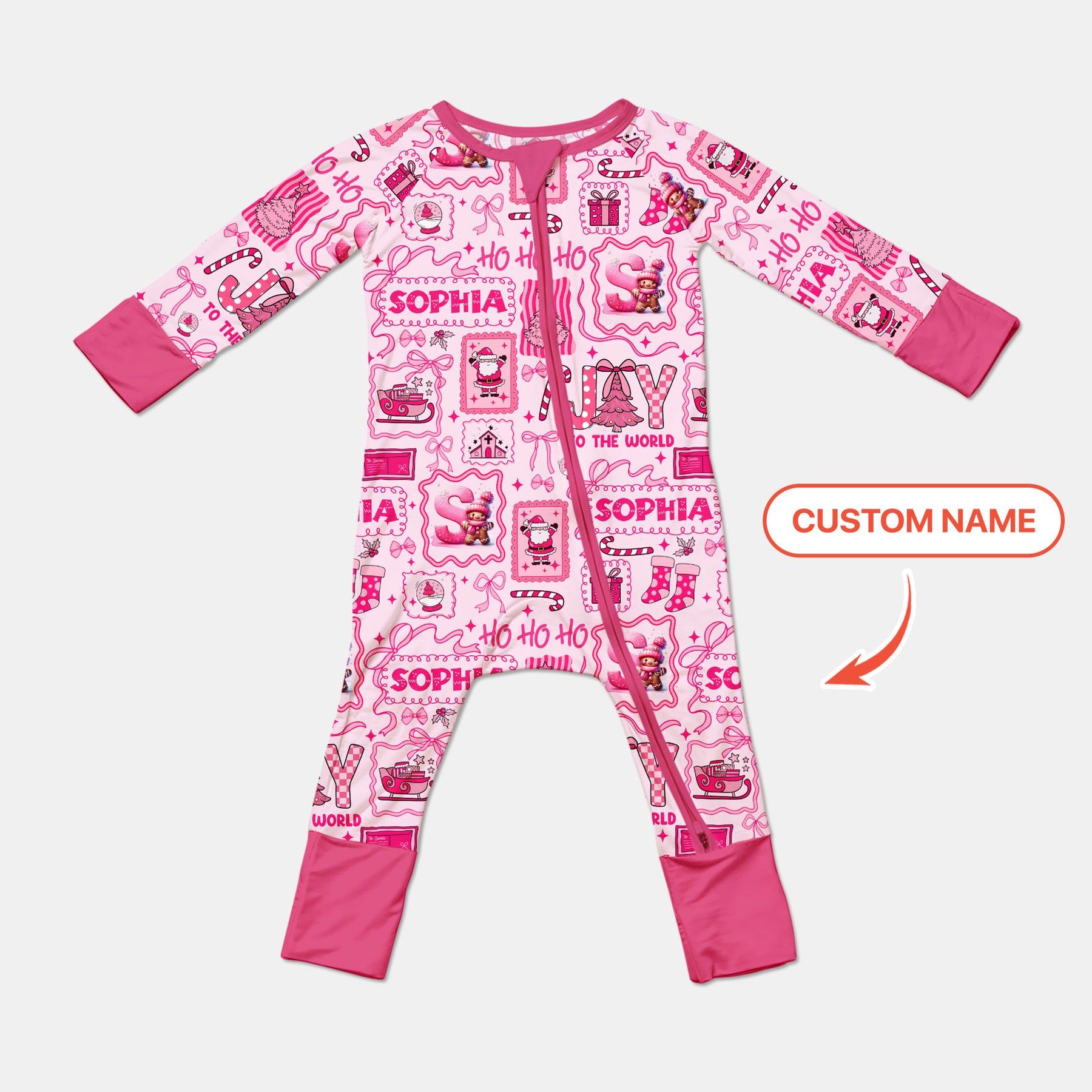 ๐ Bamboo Zippies & PJs โ Custom Name Preppy Pink Christmas