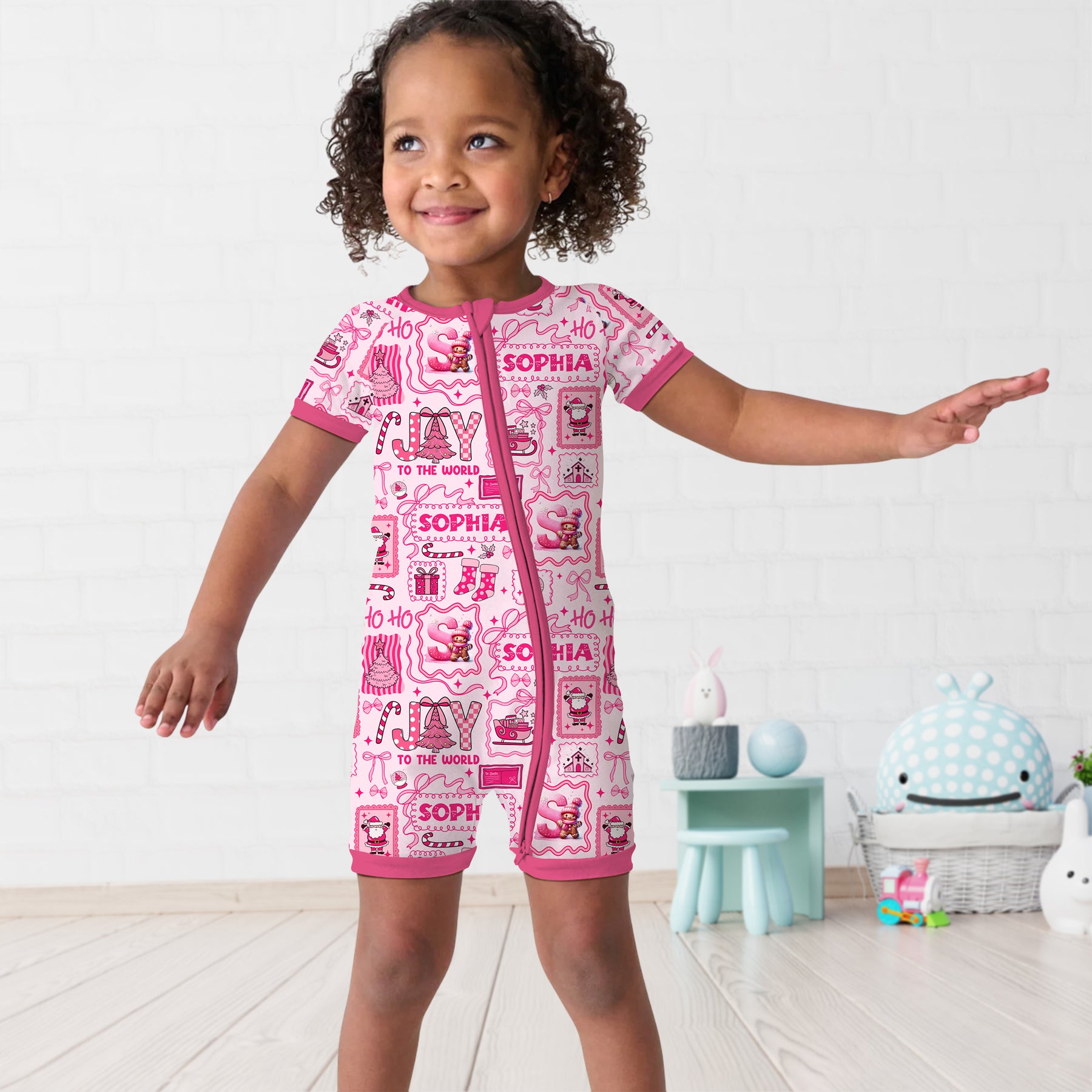 🎀 Bamboo Zippies & PJs – Custom Name Preppy Pink Christmas