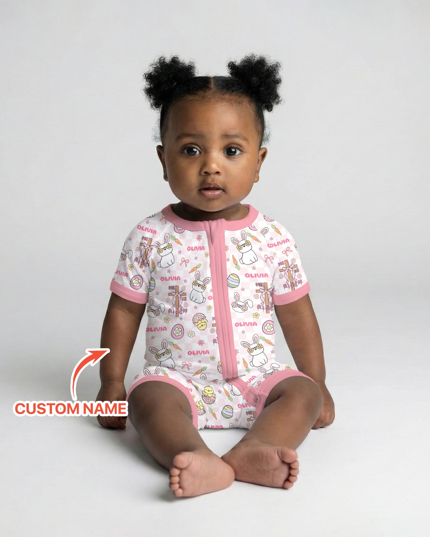 đ°đ¸Custom Name Retro Easter Bamboo Zippies & PJ Sets bring a playful, faith-filled twist to springtime sleepwear