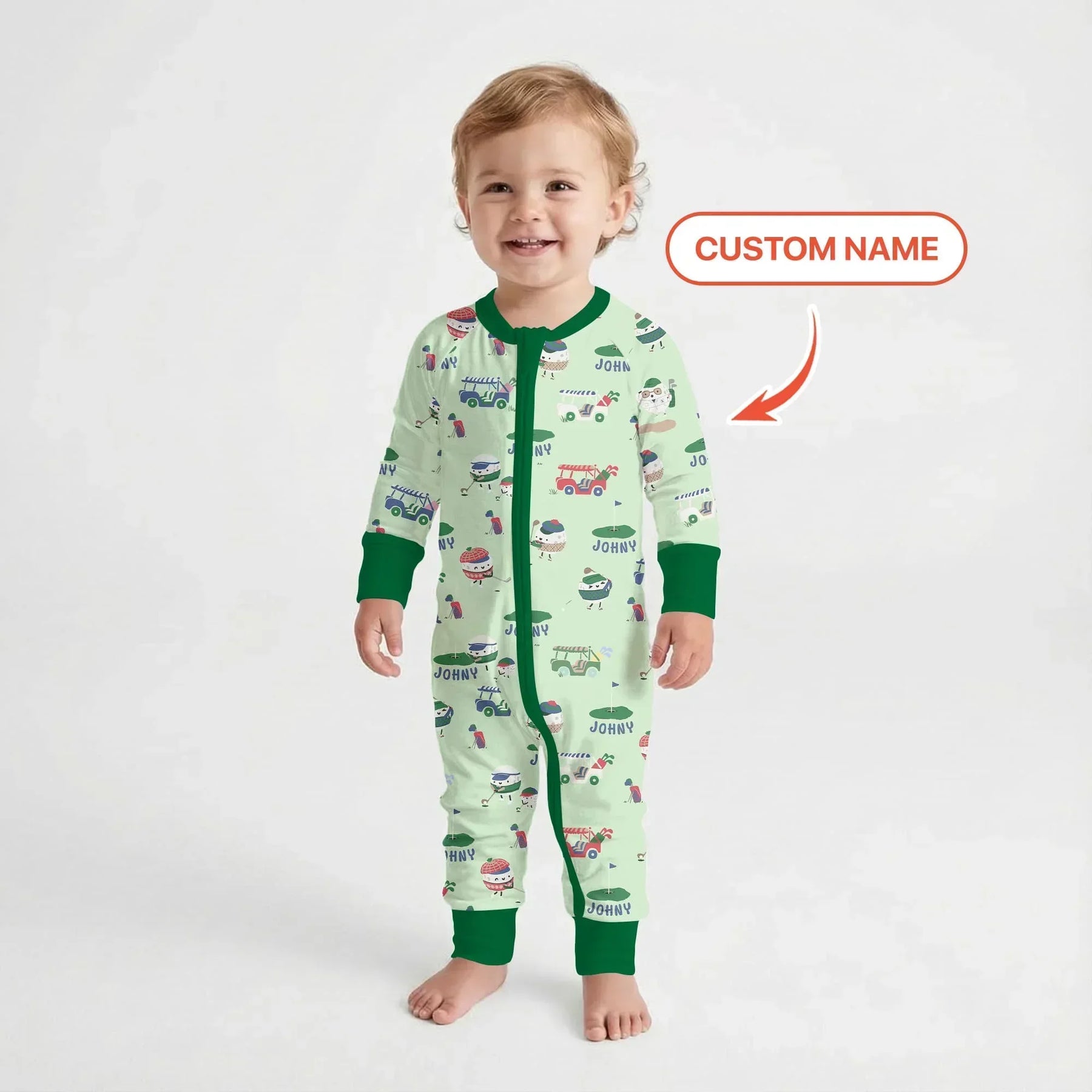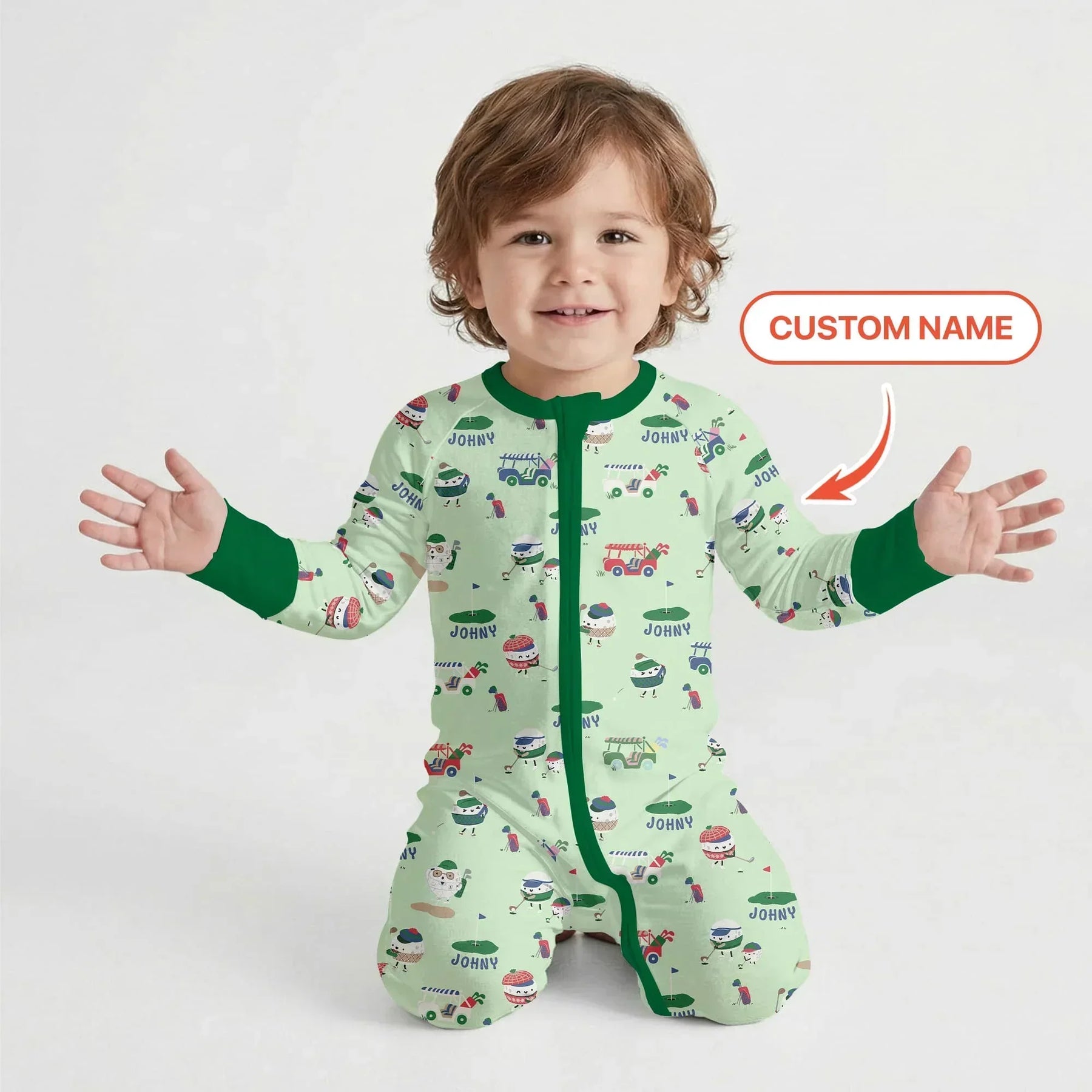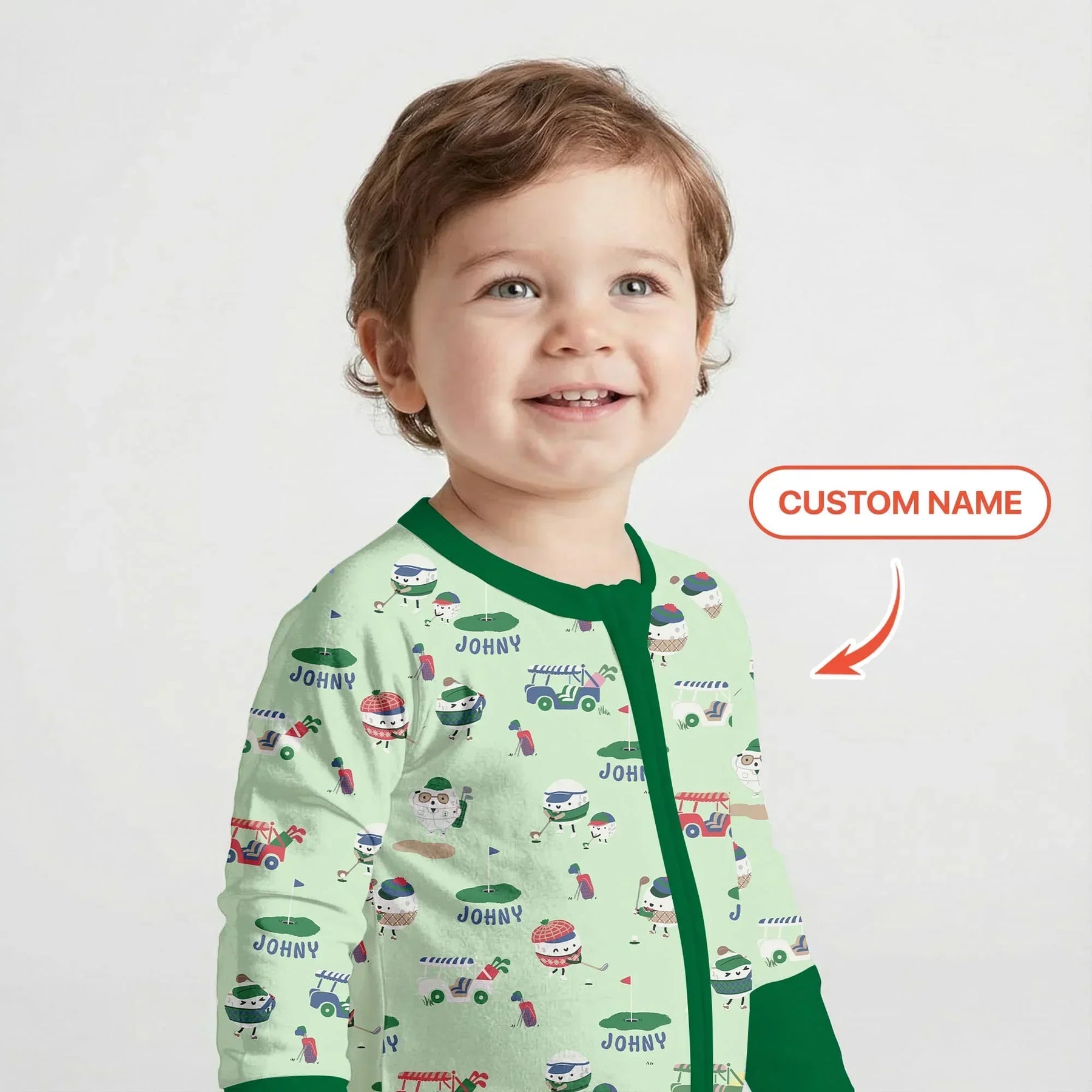Hit the green in cozy style with our custom name golf pajama collection. Featuring playful golf balls, carts, and course-inspired prints in two color options, this collection is made from ultra-soft, breathable fabric for all-day comfort. Perfect for little golfers, personalized gifts, and matching family moments on and off the course.