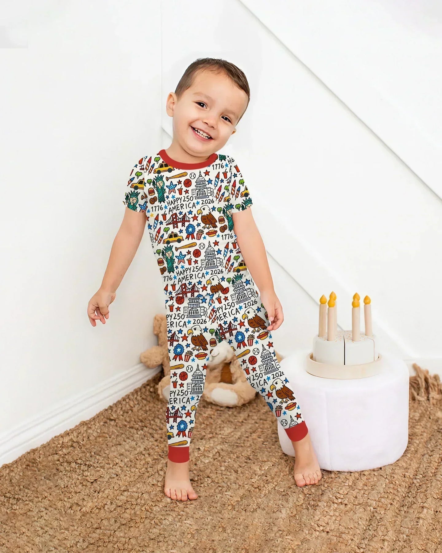 Doodle America 250th Anniversary Family Two Piece Short Sleeve Pajama Set