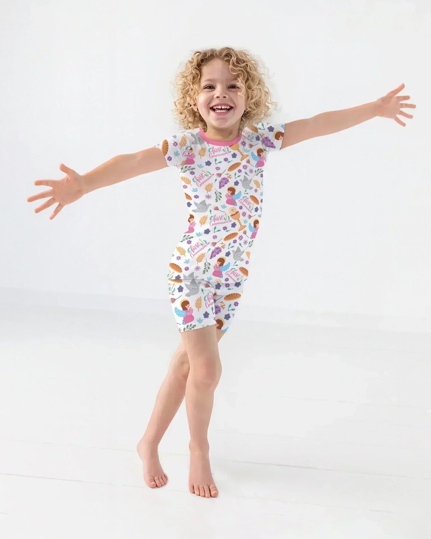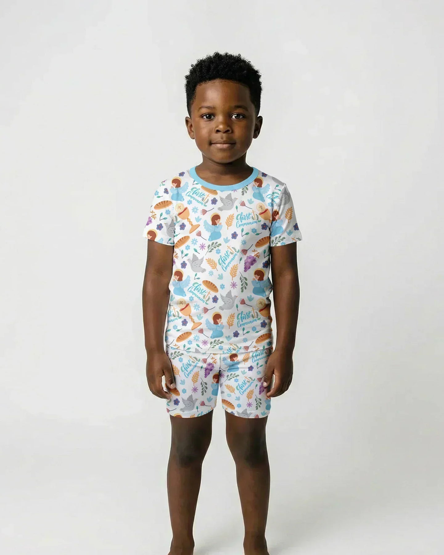 First Communion Two Piece Short Sleeve Shorts Pajama Set