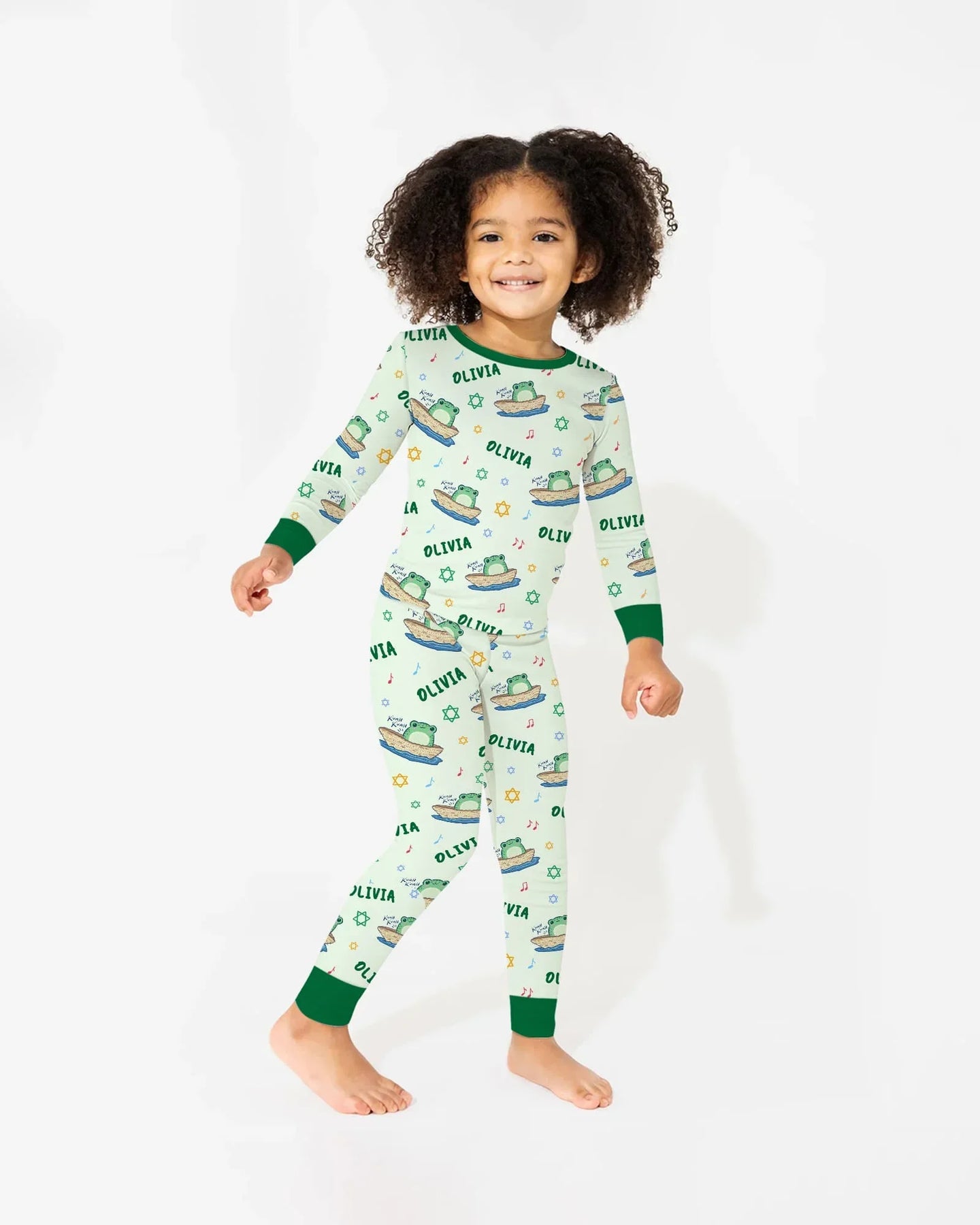 Frogs Here, Frogs There Passover Custom Name Two Piece Long Sleeve Pajama Set