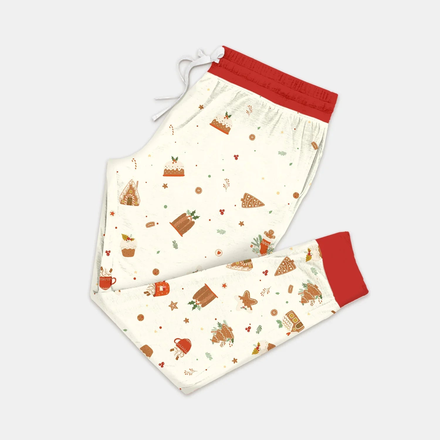 Adorned with gingerbread cookies, Christmas trees, mugs of cocoa, and festive stars, this design brings the sweetness and wonder of the season to life — like a cozy Christmas story woven into fabric.