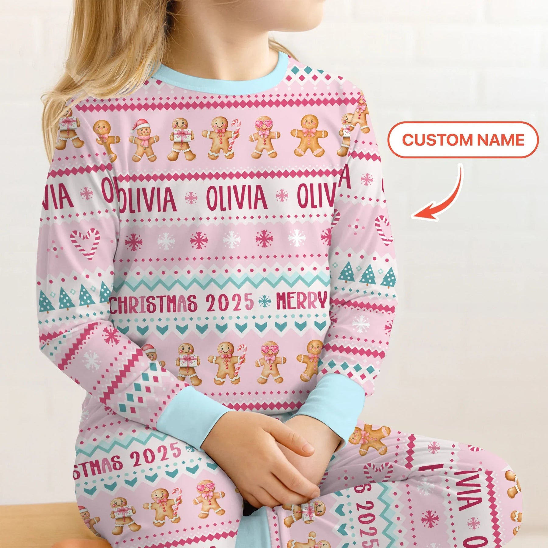 Gingerbread the Pink Custom Name Two Piece Long Sleeve Pajama Set