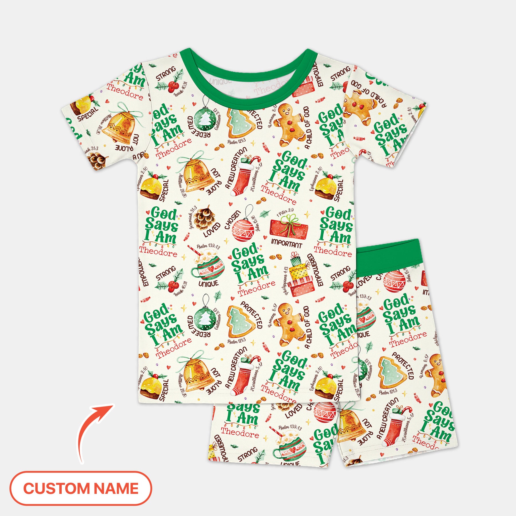 God Says I Am Custom Name Joyful Christmas Two Piece Short Sleeve Shorts Pajama Set