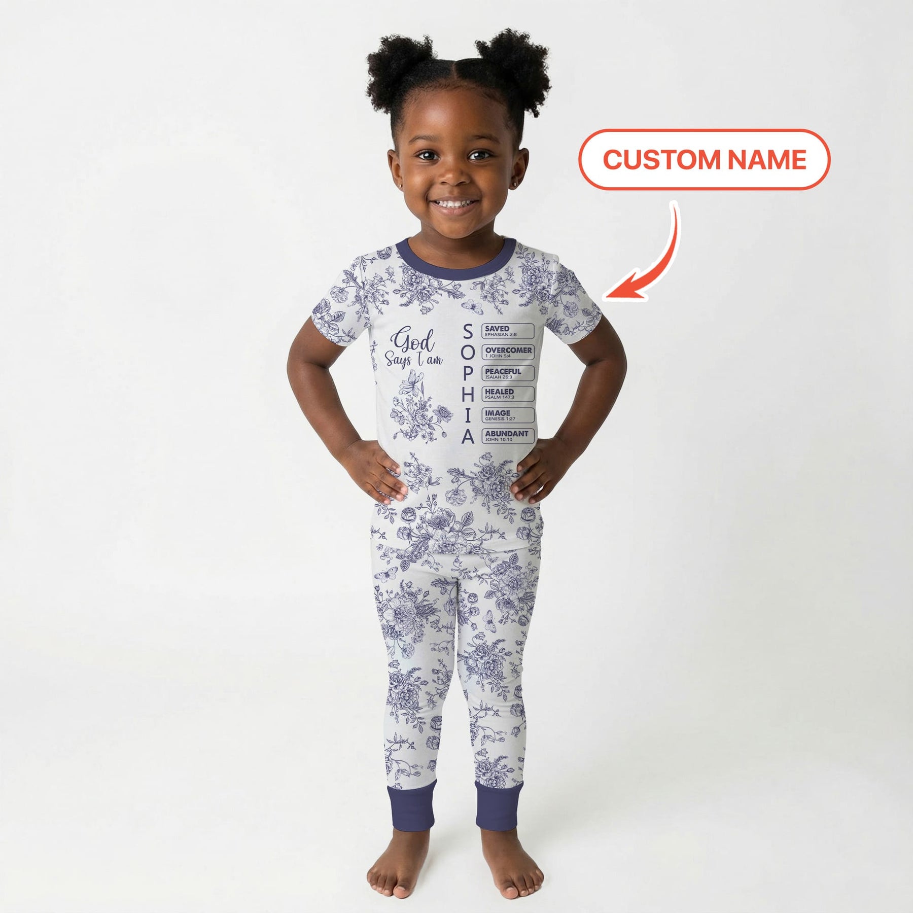 God Says I Am – Faith in Bloom Custom Name and Affirmations Two Piece Short Sleeve Pajama Set