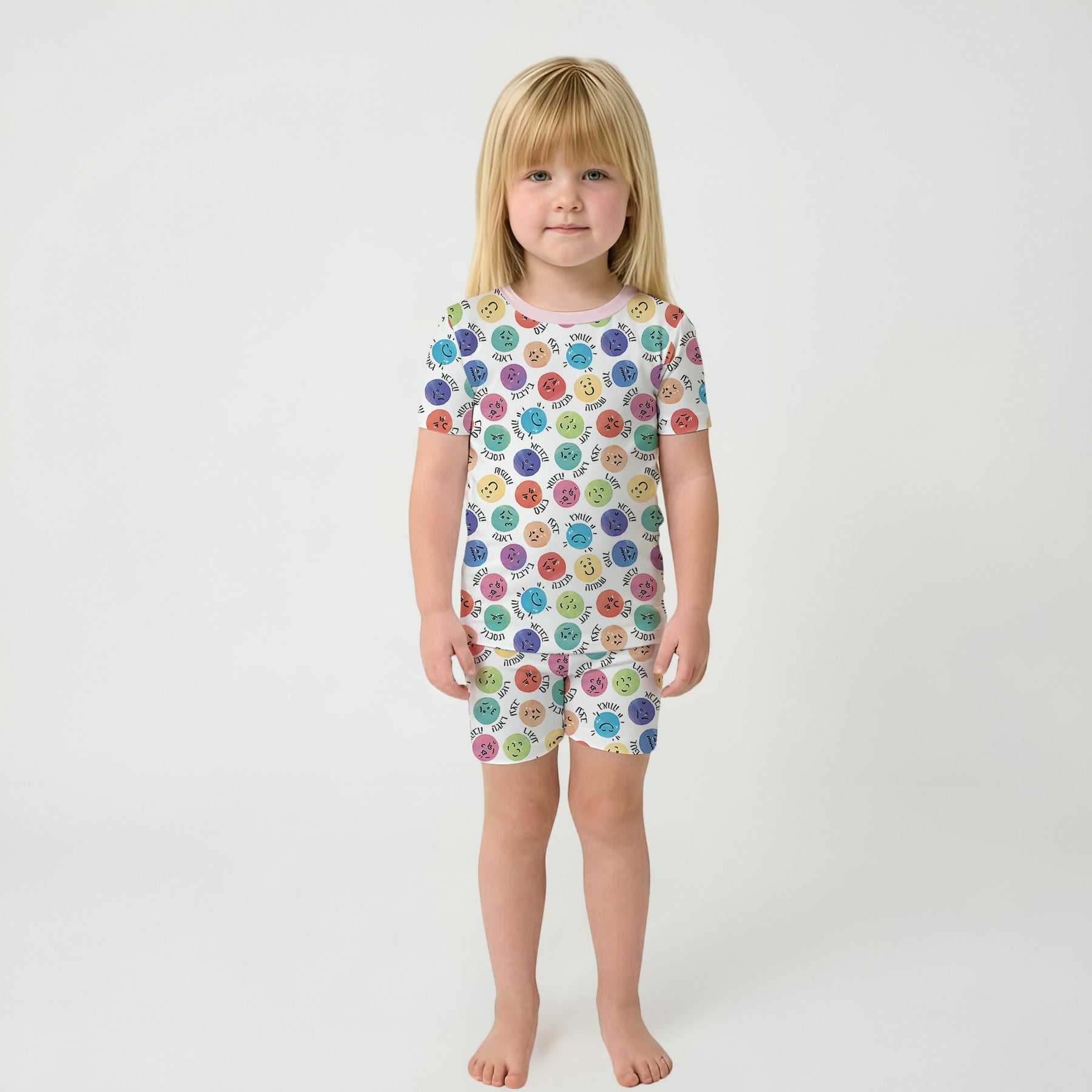 My Emotions Hebrew Two Piece Short Sleeve Shorts Pajama Set