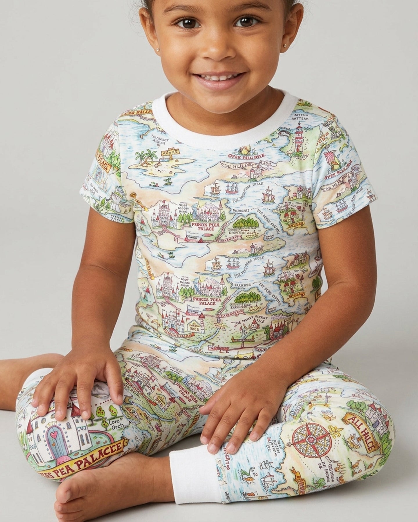 Once Upon A Map Mommy & Baby Matching Bamboo Two Piece Short Sleeve Pajama Set
