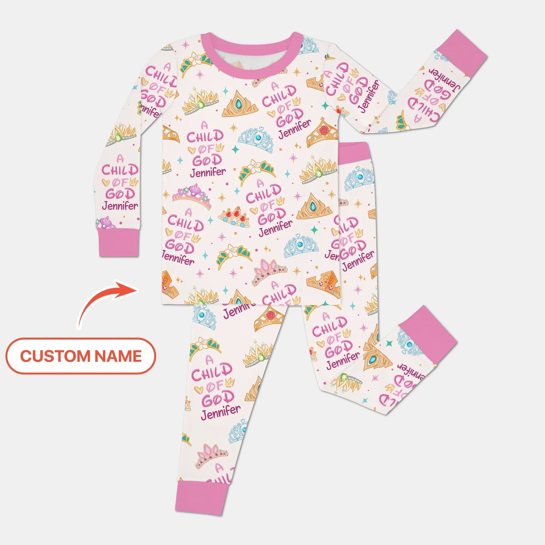 Princess A Child Of God Custom Name Two Piece Long Sleeve Pajama Set