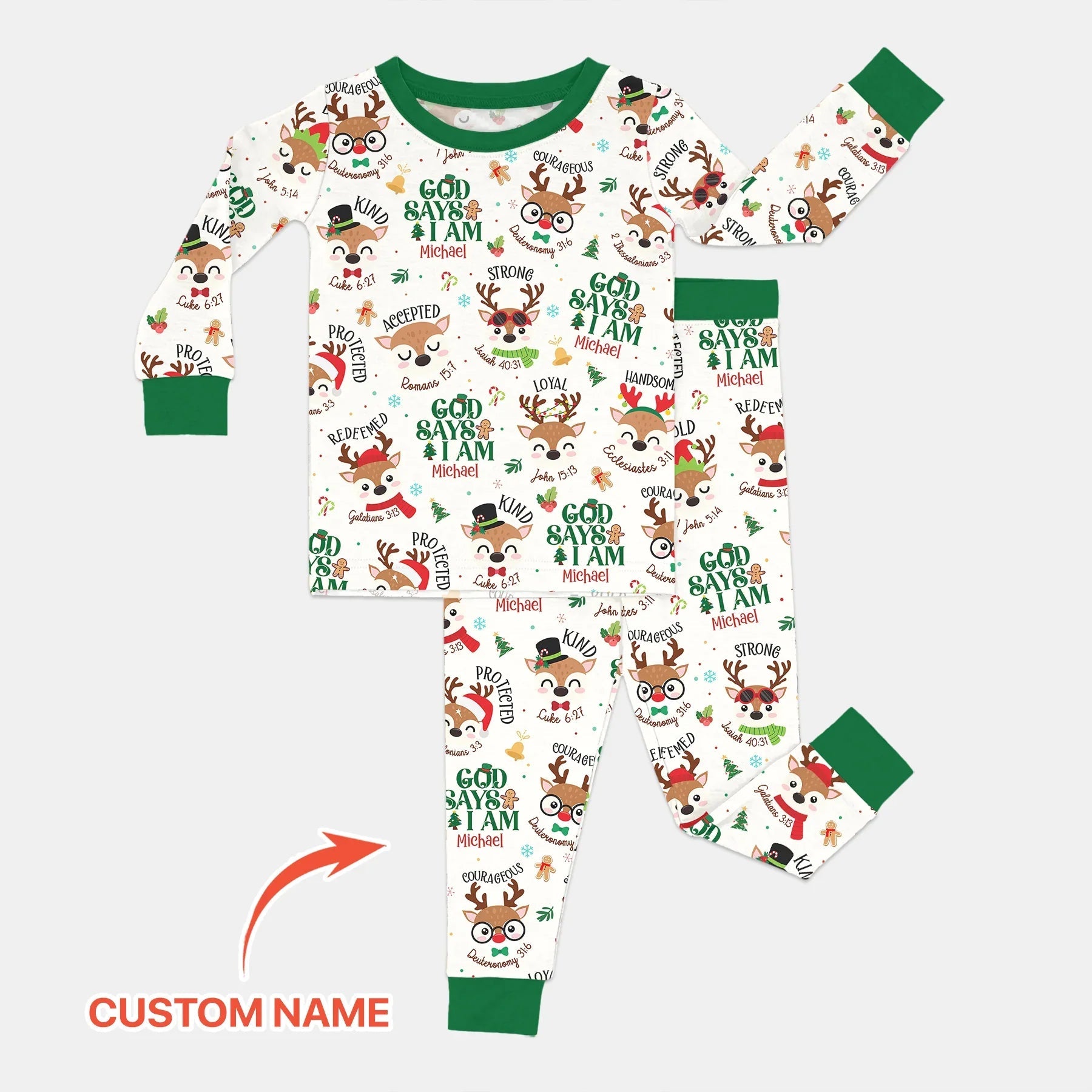 Santa’s Reindeer God Says I Am Custom Name Two Piece Long Sleeve Pajama Set