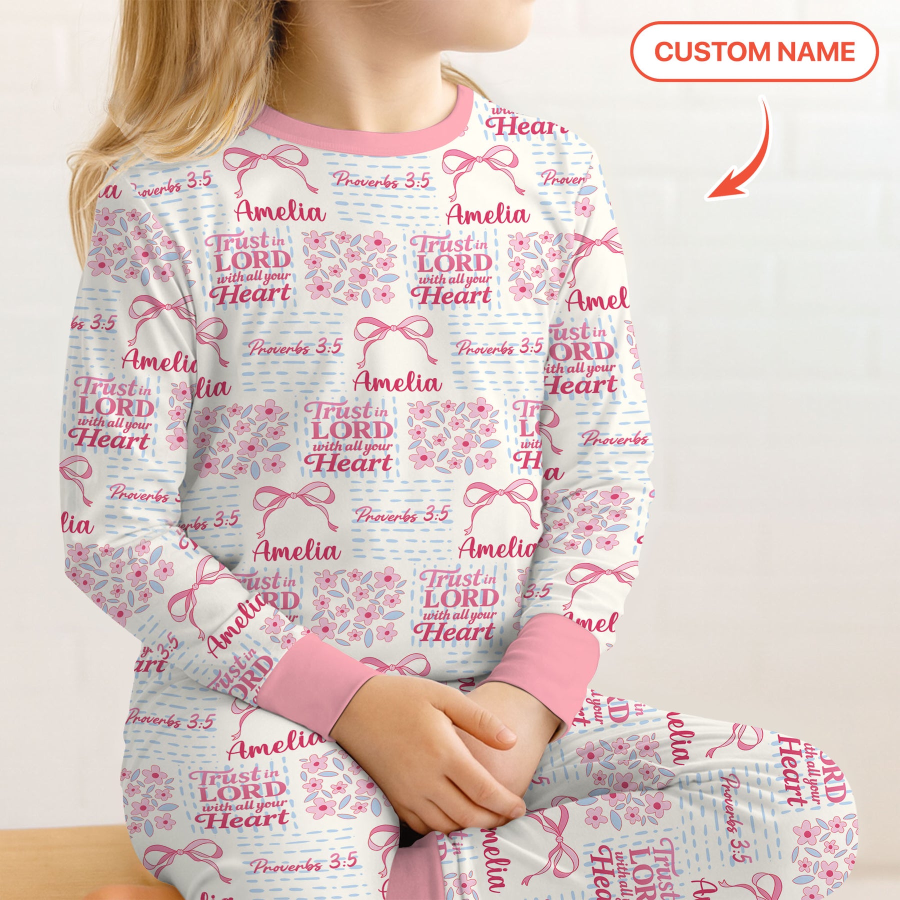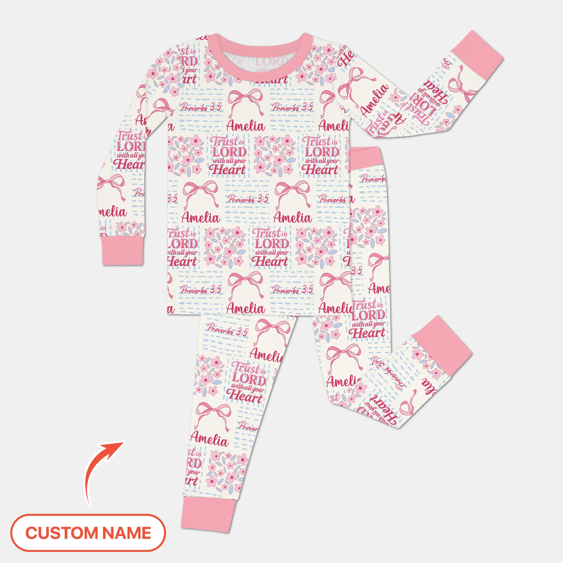 Trust The Lord With All Your Heart Custom Name Two Piece Long Sleeve Pajama Set