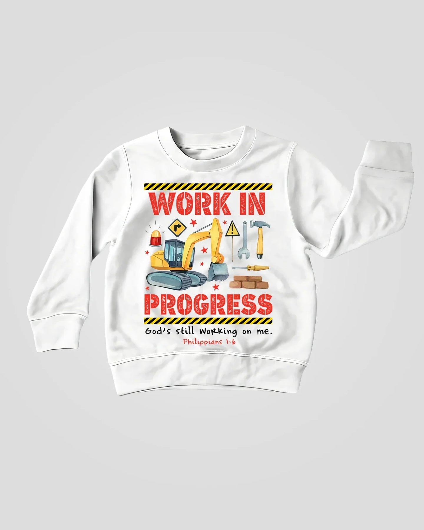 Built with faith and a whole lot of personality, the Under Construction Collection is a fun and meaningful reminder that we’re all a “work in progress.” Featuring colorful construction trucks, tools, caution stripes, and the uplifting message “Work in Progress – God’s still working on me. Philippians 1:6,” this design encourages growth through faith in a playful way kids will love.