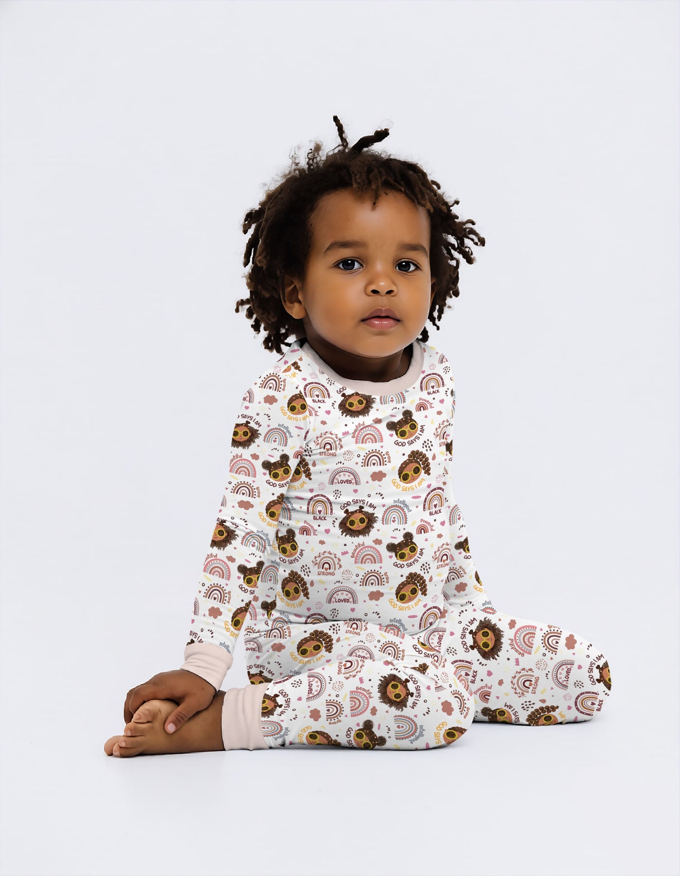Afro African American Girl Two Piece Long Sleeve Pajama Set