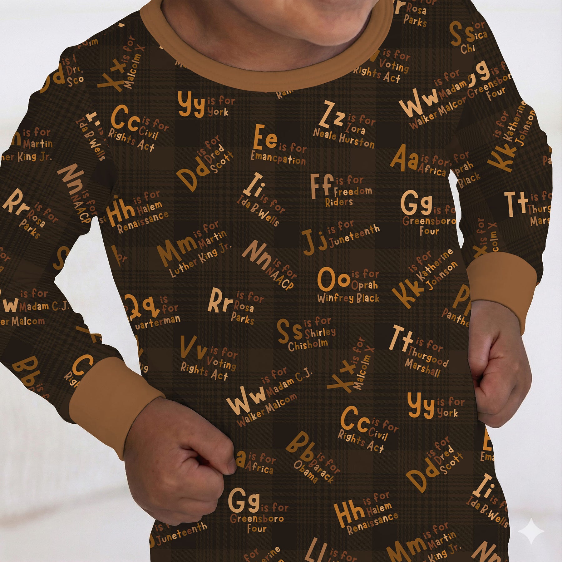 Black History Alphabet Two Piece Long Sleeve Pajama Set
