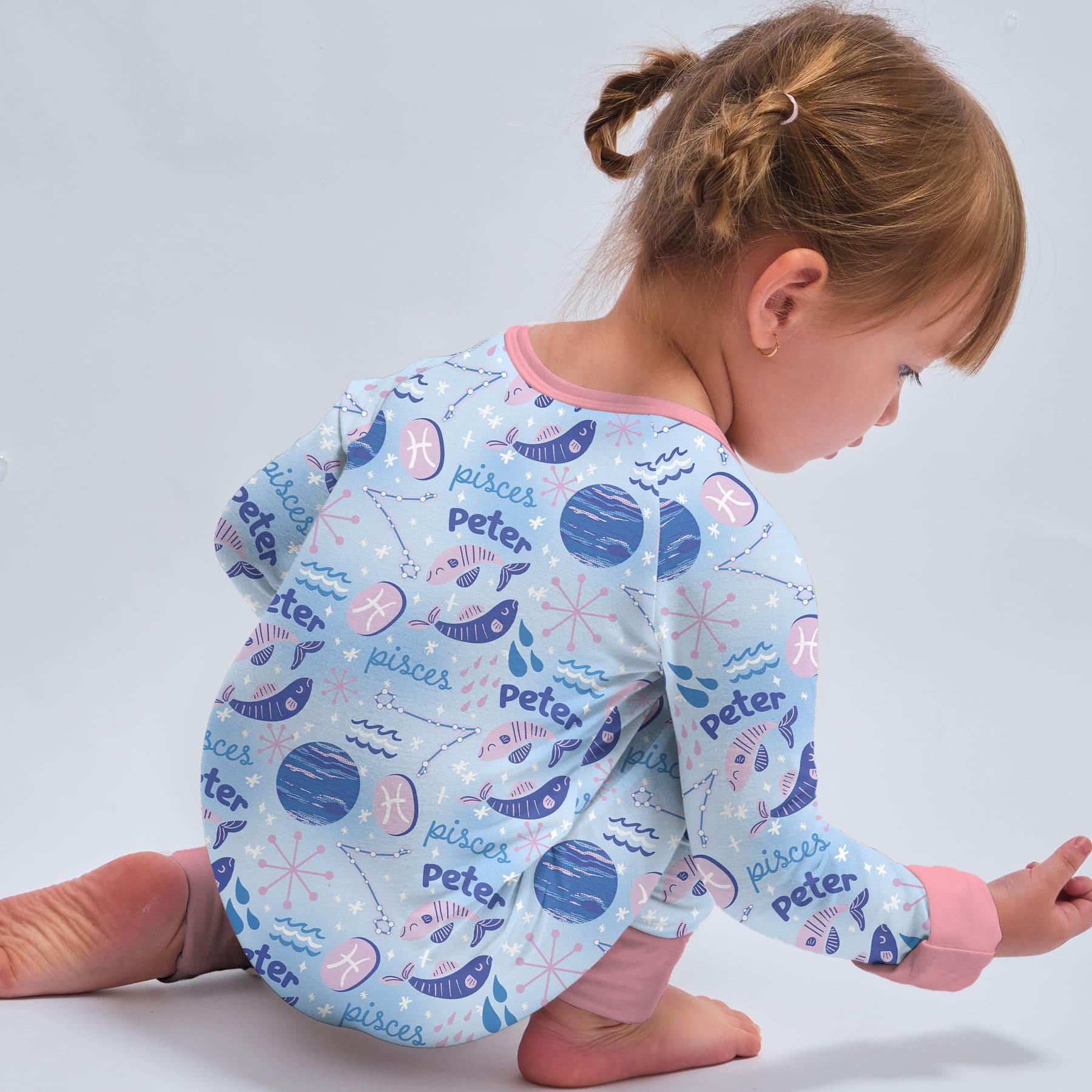 Discover our personalized Pisces zodiac collection—soft, breathable pajamas featuring dreamy celestial artwork and custom names for a truly magical bedtime.
