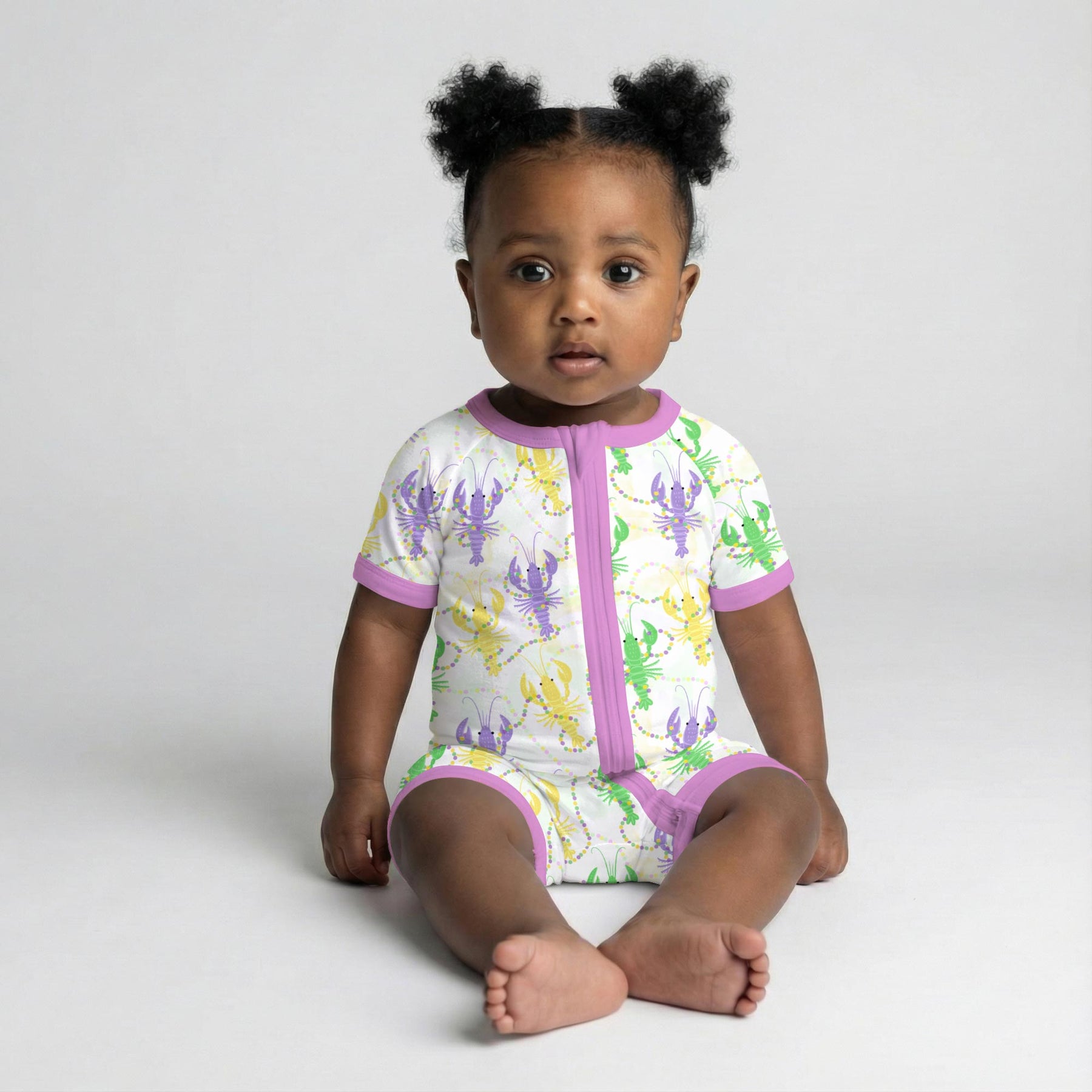Bring festive charm to bedtime with our Mardi-Gras collection, featuring playful lobster prints in purple, green, and yellow. Perfect for parents seeking fun, colorful, and comfy sleepwear that stands out in festival season.
