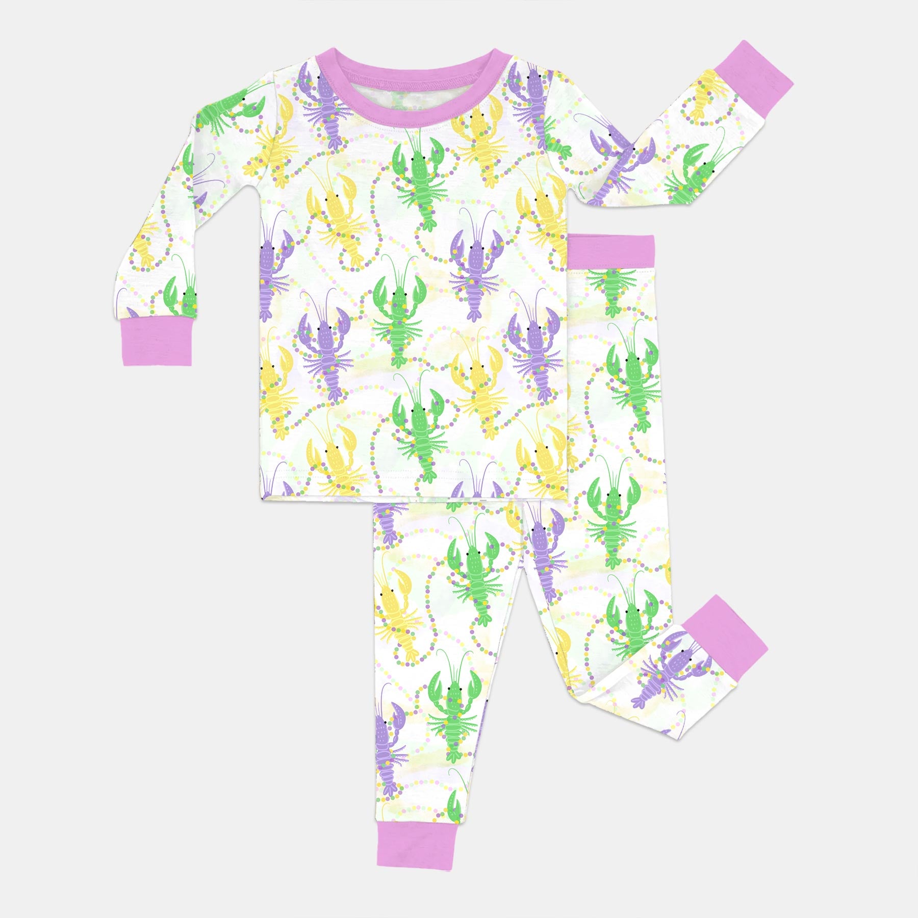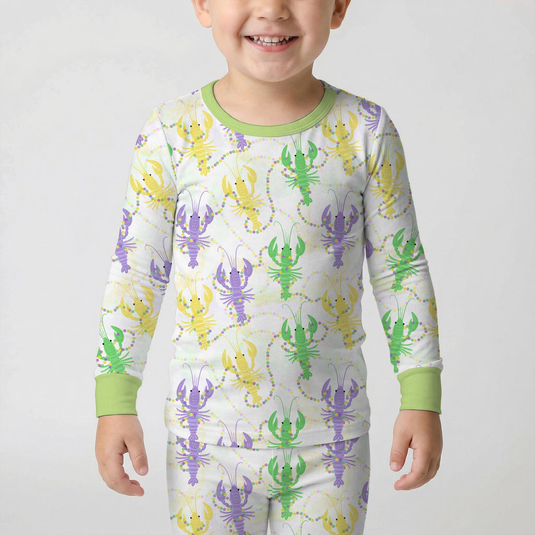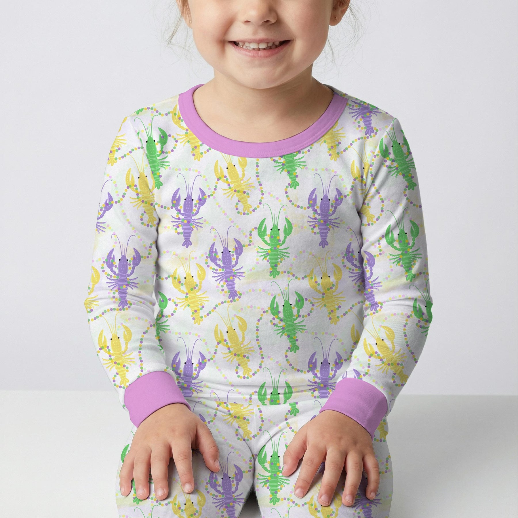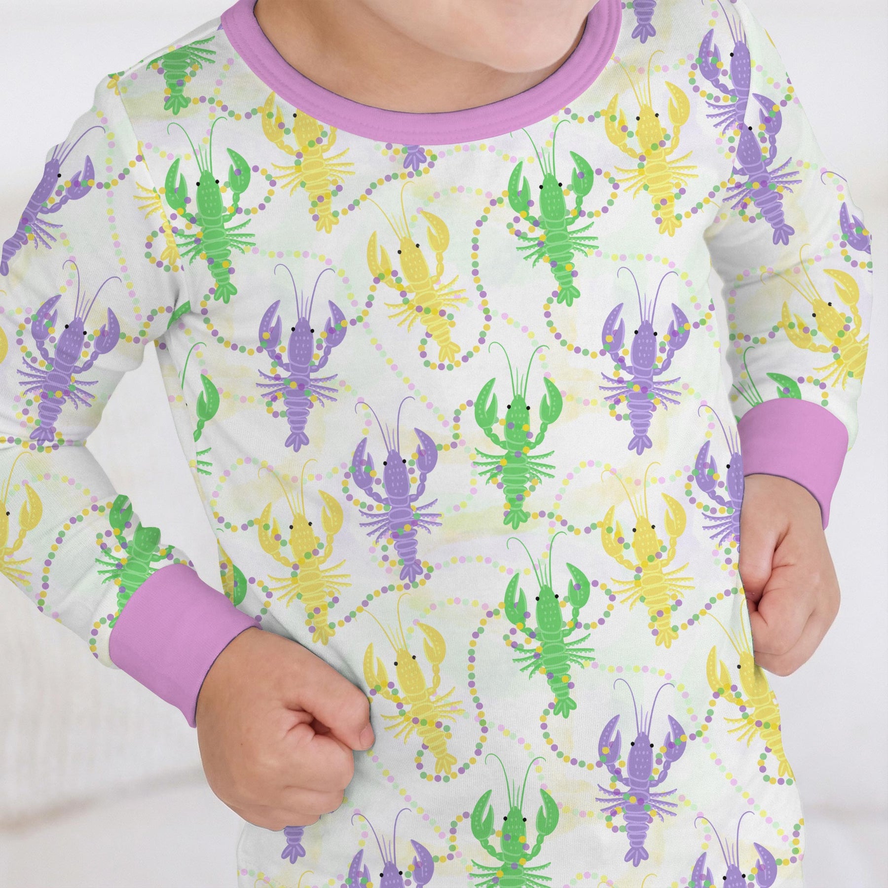 Mardi Gras Crawfish Family Matching Two Piece Long Sleeve Pajama Set