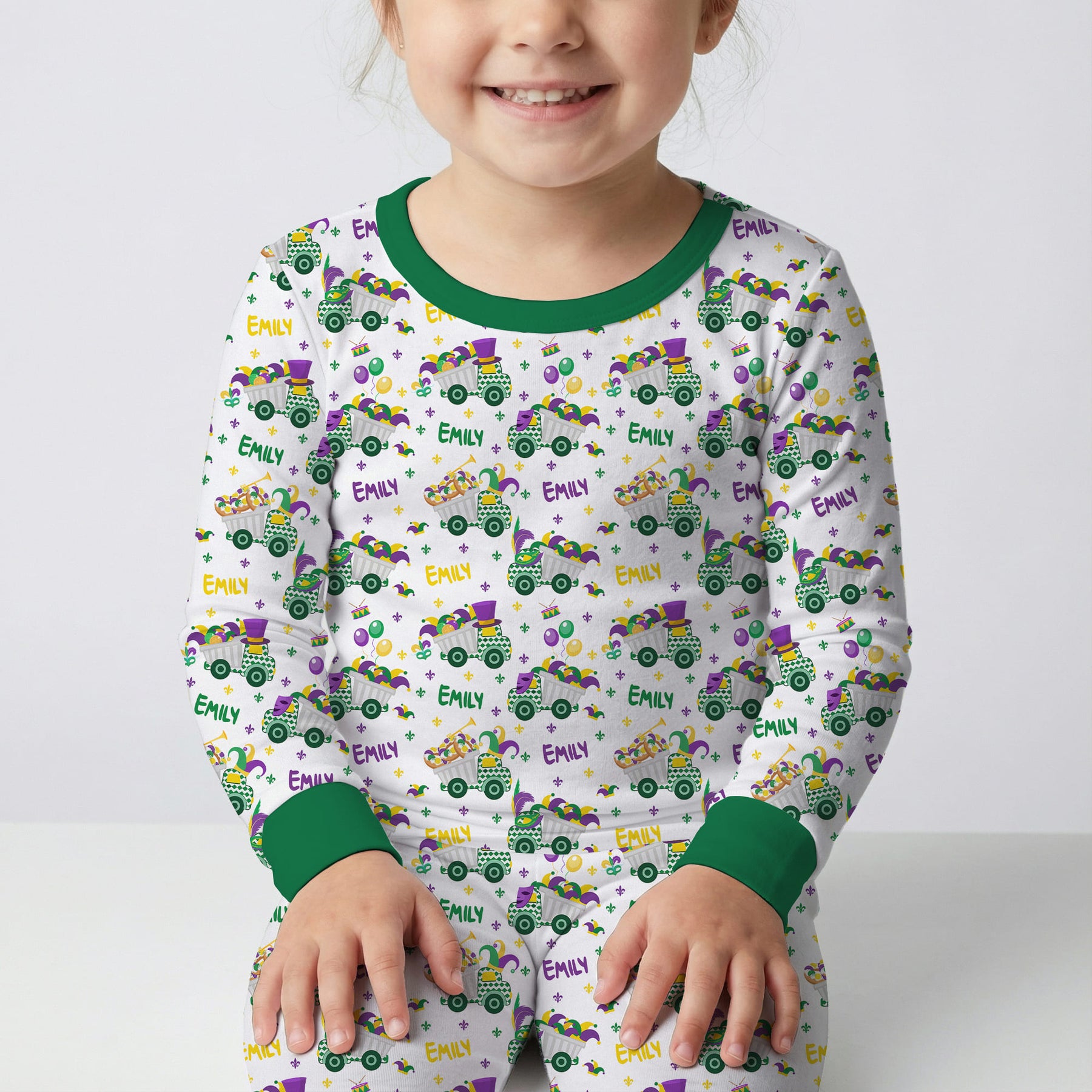 Celebrate in style with our personalized Mardi Gras pajama collection—fun parade trucks, festive colors, and ultra-soft comfort for kids who love vibrant holiday vibes.