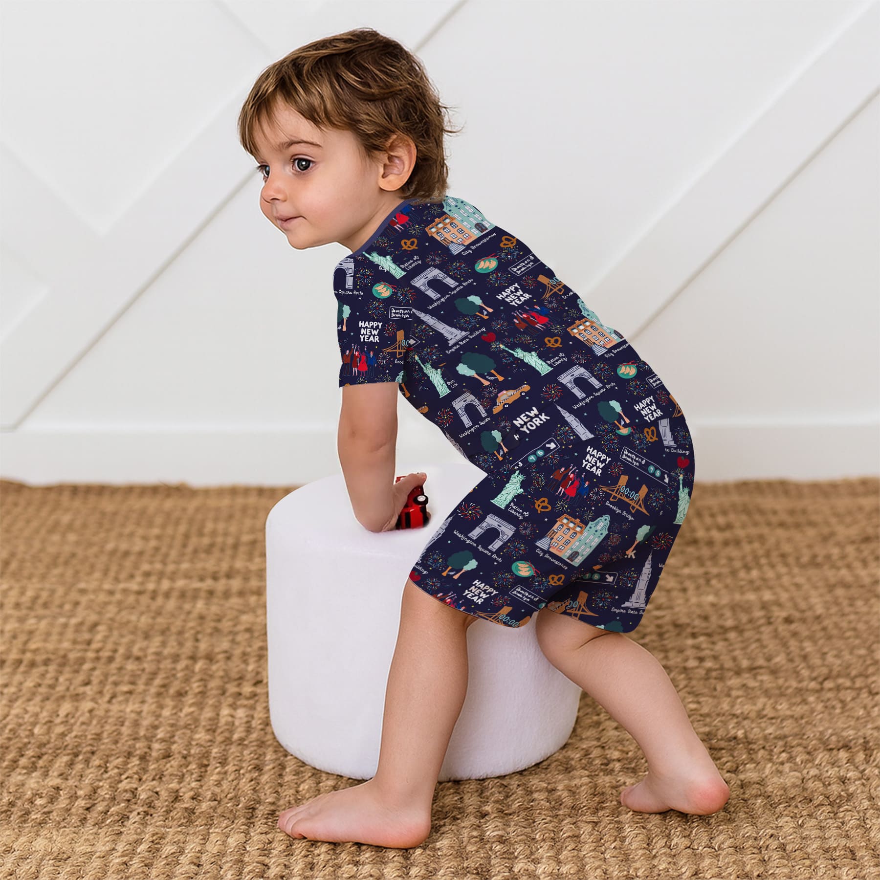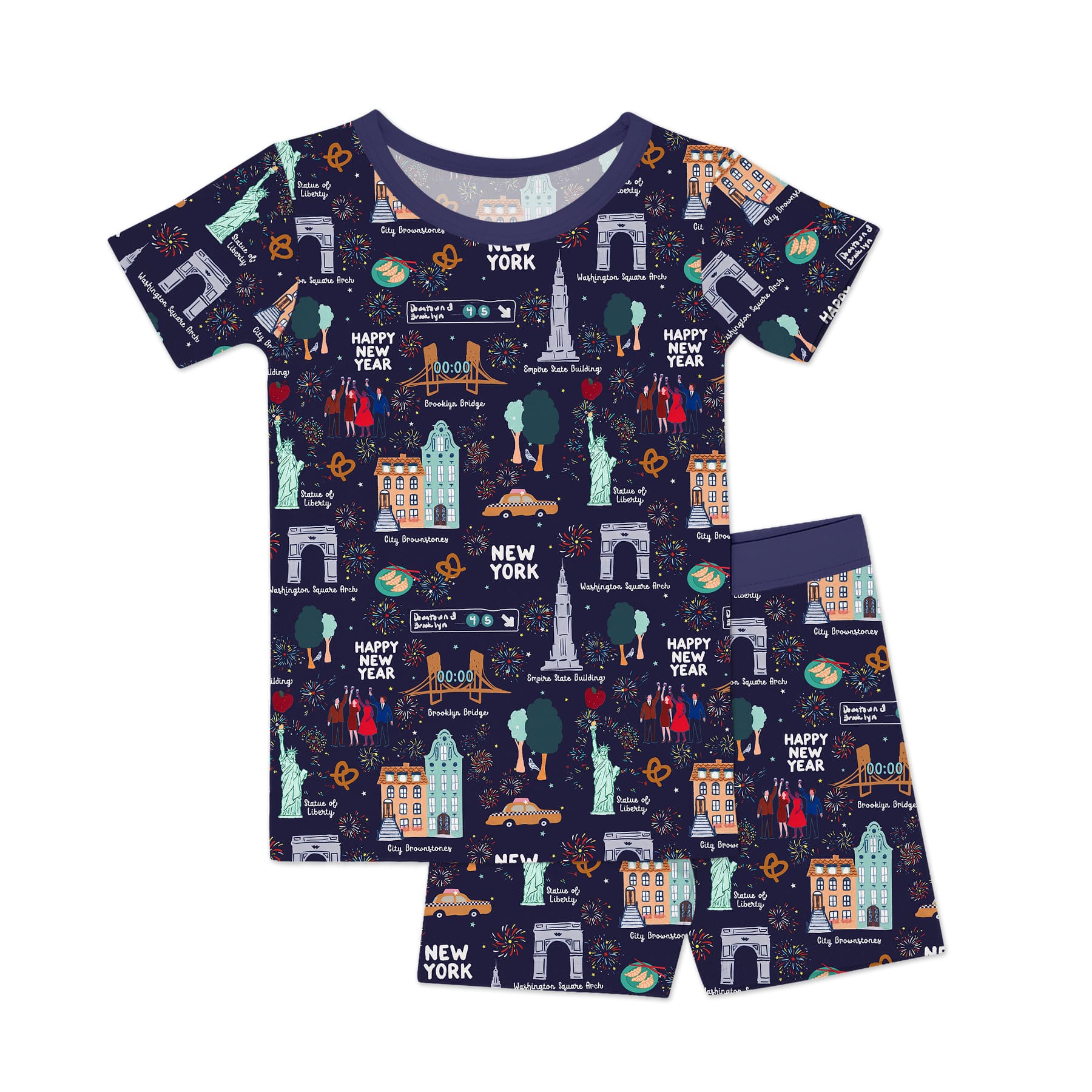 New York New Year Eve Two Piece Short Sleeve Shorts Pajama Set