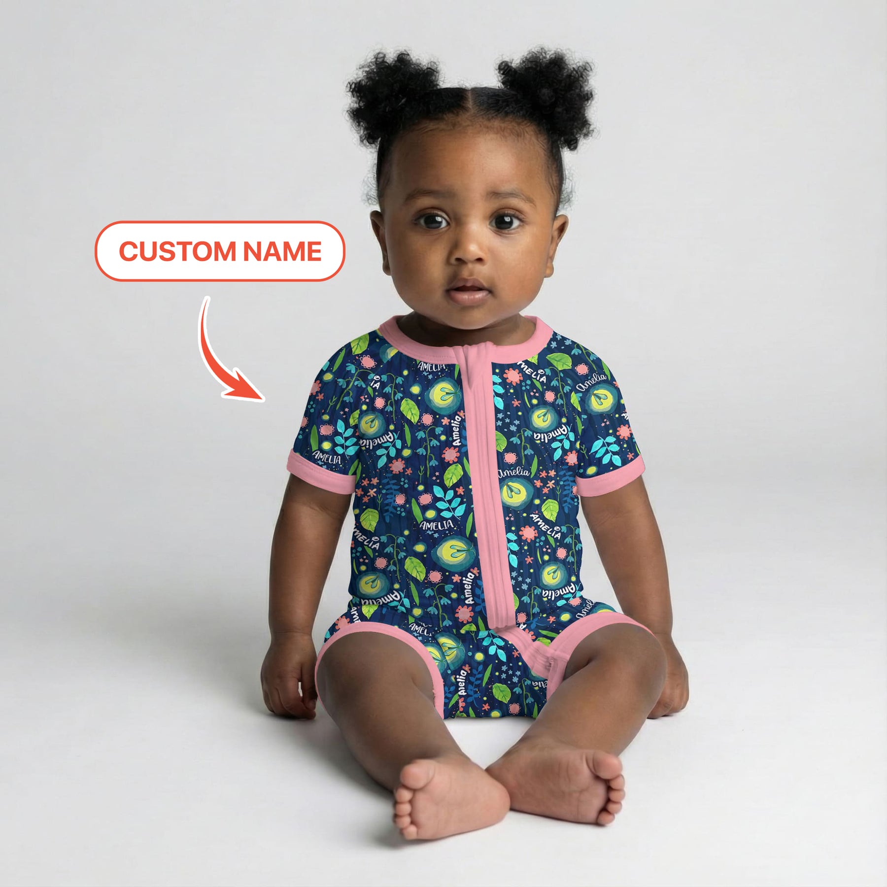 Step into a magical nighttime garden with the Nighttime Bugs – Custom Name collection. Featuring glowing fireflies, playful little bugs, and lush leaves set against a deep night-blue background, this design captures the calm and wonder of nature after dark. Personalized with your child’s name, each piece becomes a unique keepsake made just for them.